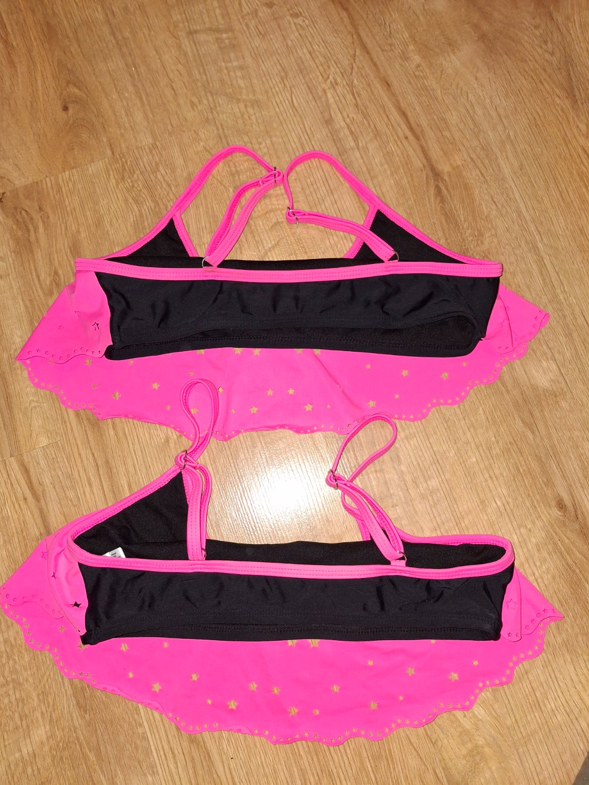 Krasne nevyblednute sýto ružová je ako na foto. Ramienka sa dajú regulovať,nevyťahané..momentálne k nim neviem nájsť spodné diely ale určite su a doplním.cena za celkovo komplet plavky spolu. Predám aj jednotlivo 5€