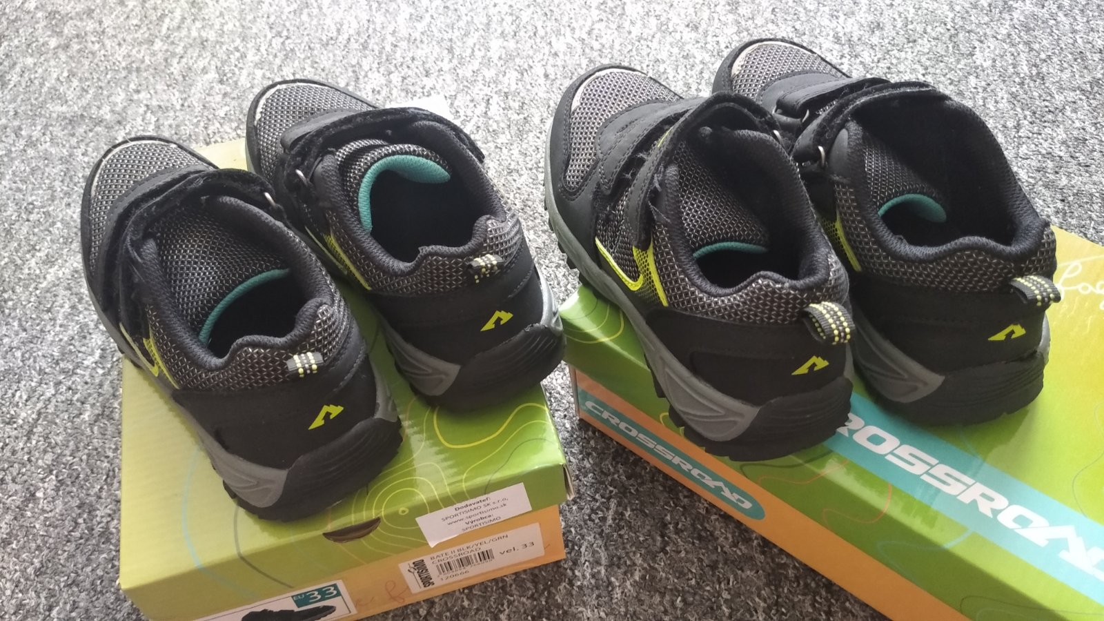 Detská chlapčenská turistická obuv zn. CROSSROAD vo výbornom stave, dva páry po dvojičkách, veľkosť EUR 33.
