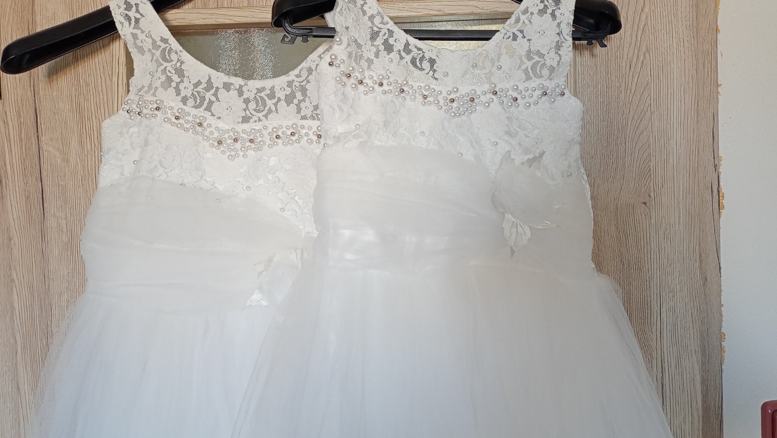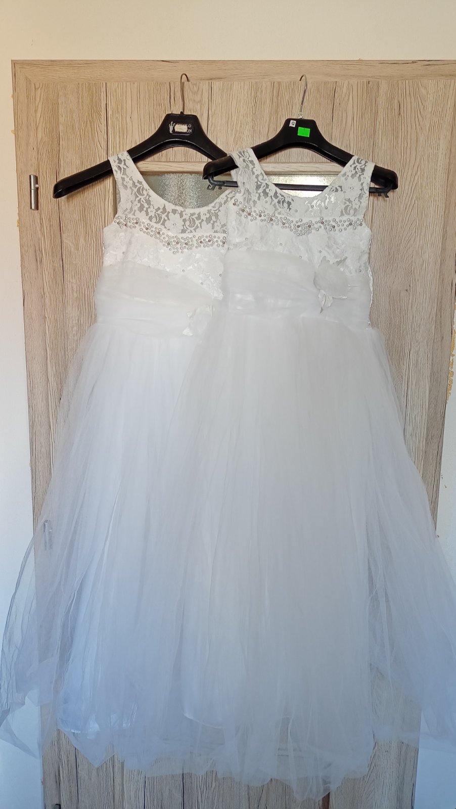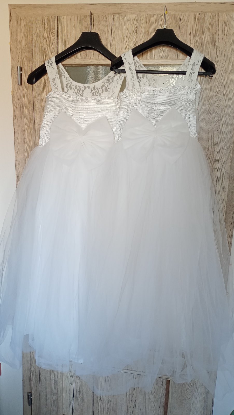 Šaty na 1. sv. prijímanie pre dvojičky, vo veľmi pekne zachovalom stave, elegantné s kruhmi. Veľkosť píše pre 11 a 12 ročné, výška 134 -140 cm. Trošku zúžené, lebo moje boli tenučké, vysoké.. Cena 75€/ ks + bolerko zvlášť kupované 15€/ ks. Cena spolu 180€