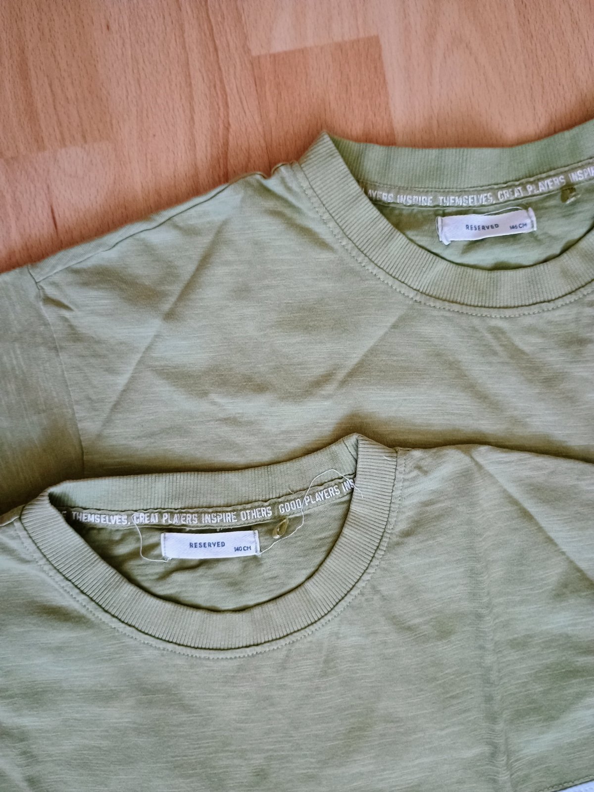 Predám v dobrom stave tričká, veľkosť 140/146, cena za kus je 2 €. Dĺžka je 54 cm, šírka pod pazuchami je 43 cm, dĺžka rukáva od ramena je 48,5 cm, dĺžka rukáva od krku je 60 cm.
