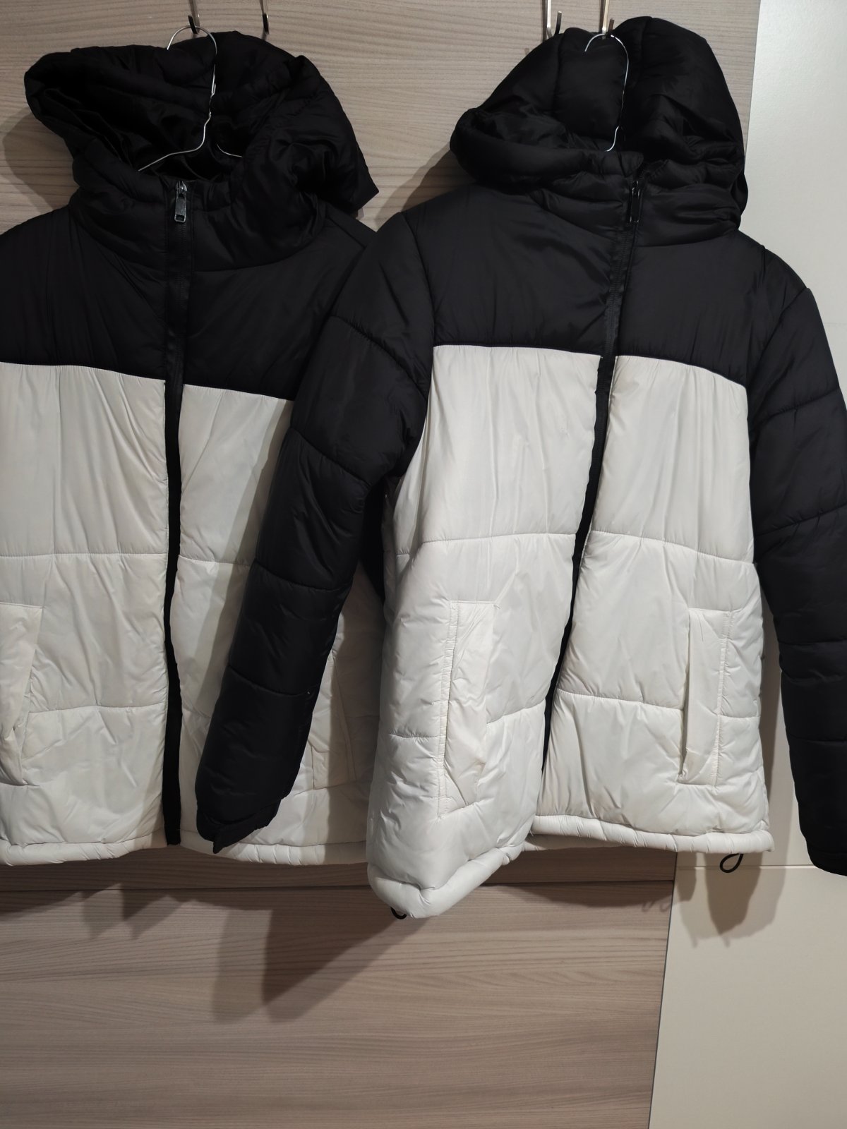 Kabátiky sú v dobrom stave.Boli pár kráy oblečené,nestihly sme vynosiť.Sú bielej farby ale takej jak maslovej.Pôvodna cena bola 28 eur za kus. Teraz za kus
