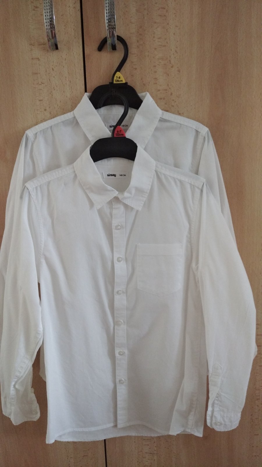 Chlapčenské biele košele vo výbornom stave, 2ks, veľkosť 140. Košele sú málo nosené (oblečené asi 3x), bez akéhokoľvek poškodenia.