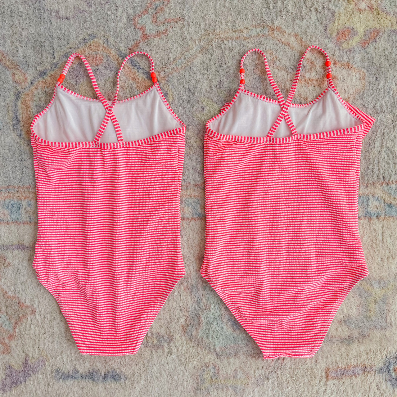 Minimálne nosené plavkove vrchy, veľkosť sedí je 128 + čelenky, tie sú nepoužité. Cena za kus 1,50 EUR, spolu 3 Eur