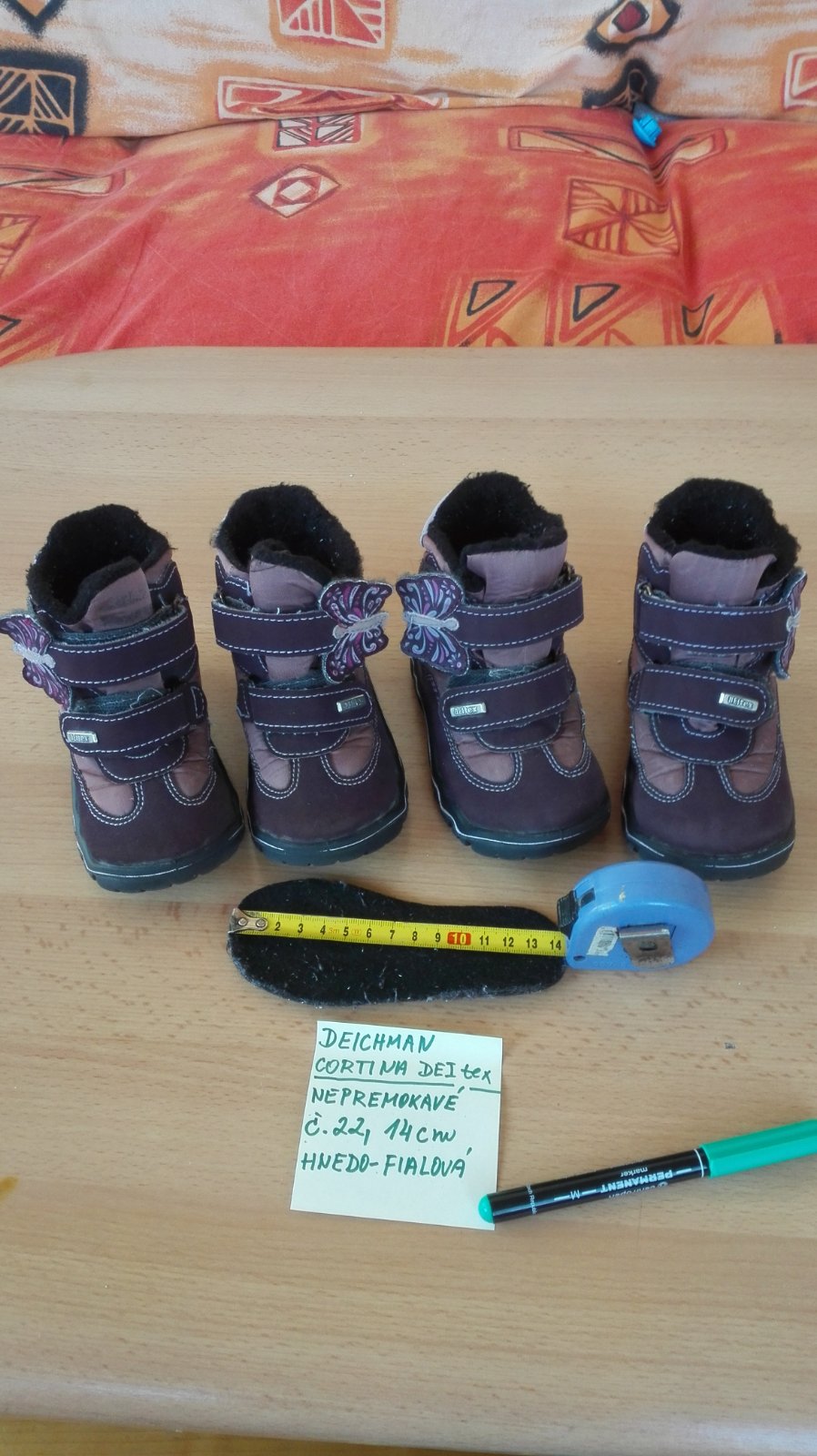 Zimne nepremokavé topánky ,hnedofialove,dei-tex technology, Deichmann. Neposkodené, trosku vidno znamky nosenia- čierne žmolky vo vnútornej vložke,čo pri nosení nevidno.
