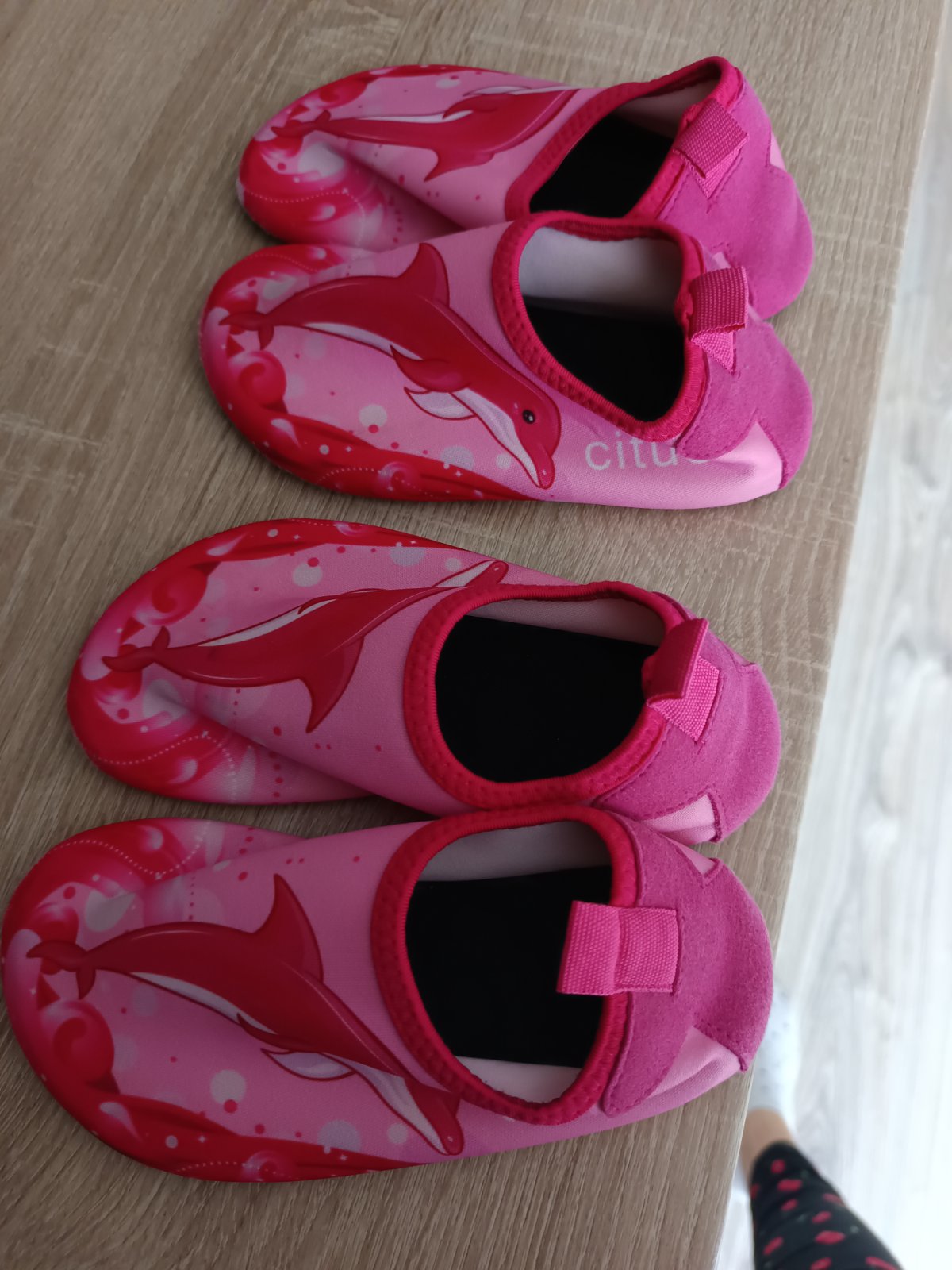 Jedny ružové a druhé lososové,málo nosené,nepoškodené,vnútorná dlžka 15cm,klemba,zapínanie na suchý zips,pena za pár+poštovné.