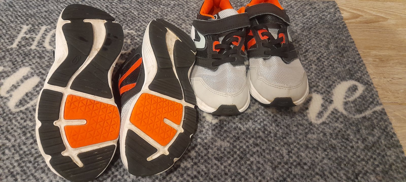 V predu ošuchané od odrážadiel. Z boku majú zips. Určite ešte poslúžia. Cena za pár 5€. Spolu 8€.