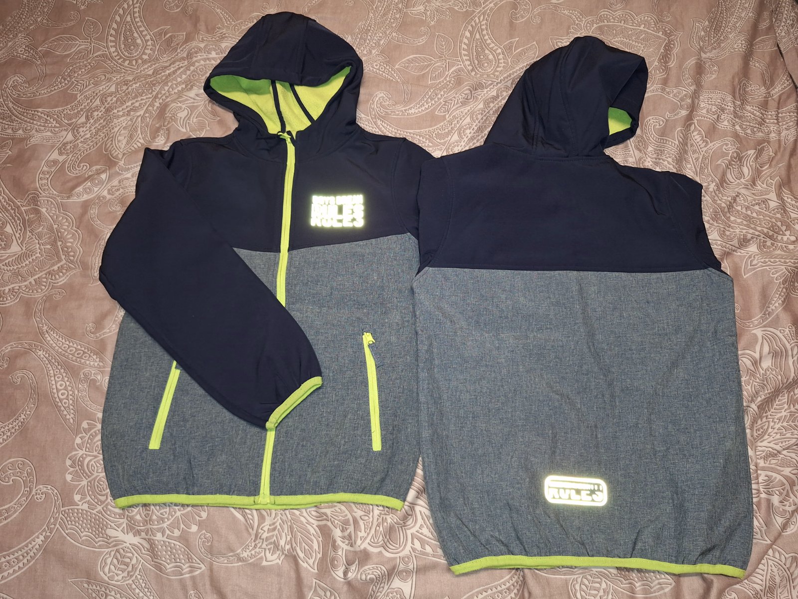 Predám bundy z Kiku, v peknom nosenom stave, žiadne poškodenia. Dvojčíslo 134/140, zateplené flisom, reflexné prvky. Cena za kus.