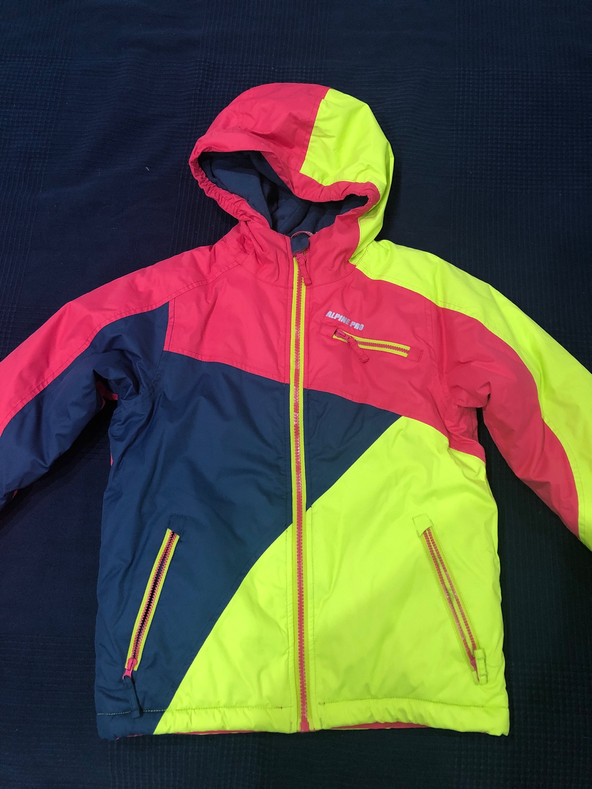 Lyžiarske bundy vo vynikajúcom stave. Oblečené zopár krát na lyžovačke. Značka alpine pro. Veľkosť 128/134. Dĺžka 55 cm, šírka 43 cm, vnútri šťahovací pás, dĺžka rukáva 60 cm od krku. Cena za jednu