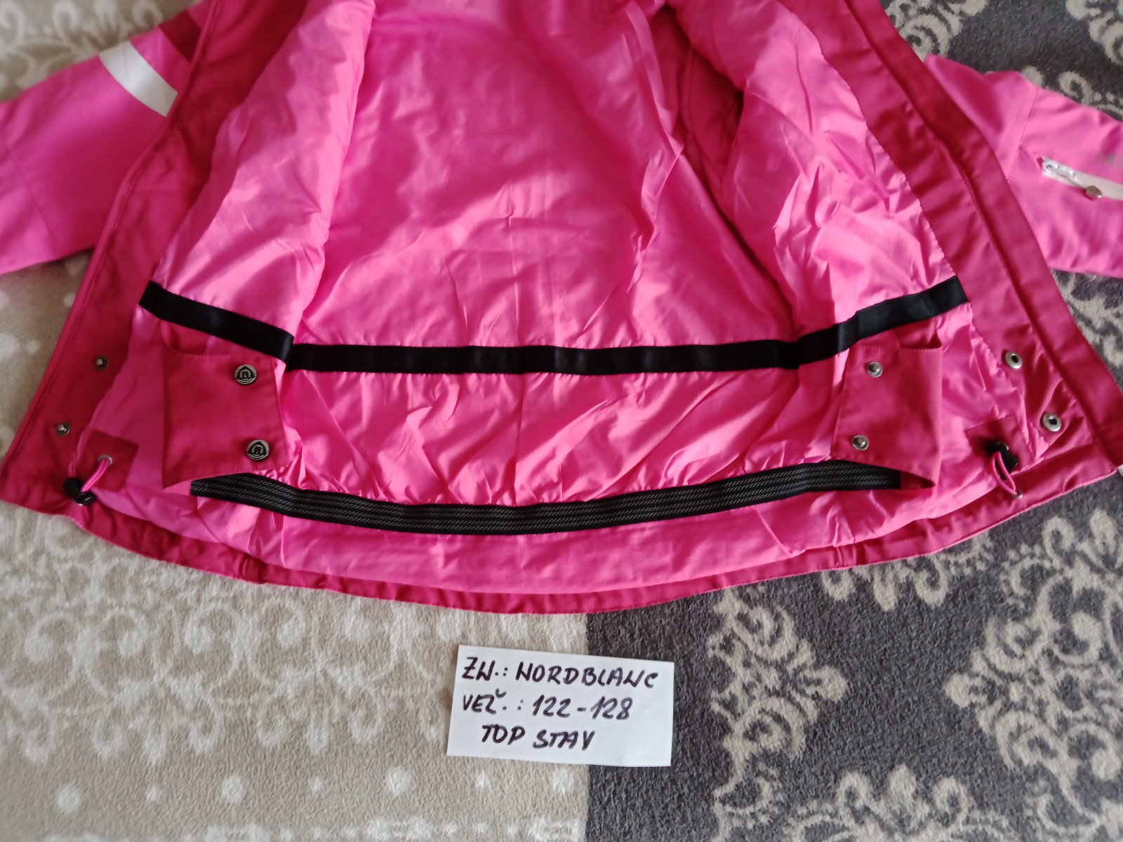 Predám dievčenské zimné lyžiarske vetrovky zn.Nordblanc veľ.122-128,v top stave. Nosené na striedačku s inými vetrovkami.Su zo strecového materiálu,nijak neobmedzuju v pohybe a je dostatočne odolný.Nepremokavy materiál Teratex 8000 s membránou a tepelná izolačná výplň Furtherm zaistí ideálny tepelný komfort.Ma nepremokavé zipsy, vylepšený bedrový pás, kapucňa je napevno,da sa rôzne nastavovať v 4 smeroch tak,aby skvelo sadla.Ma vrecko na rukáve na skipass.Je určená pre všetky rekreačné športy.Cena za kus je 32eur.
