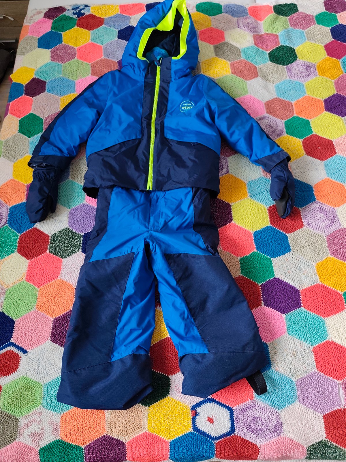 Ponúkam perfektný zimný komplet z Decathlonu. Mám dva rovnakej velkosti. Sú skoro ako nové. Veľká možnosť variability (skracovanie nohavic aj rukavov). Bunda sa da s otelovackami pripnut zipsom,takze sa vlastne vytvori kombineza. Rukavice sa tiez cvockou daju pripnut k bunde (dieta ich nestrati).