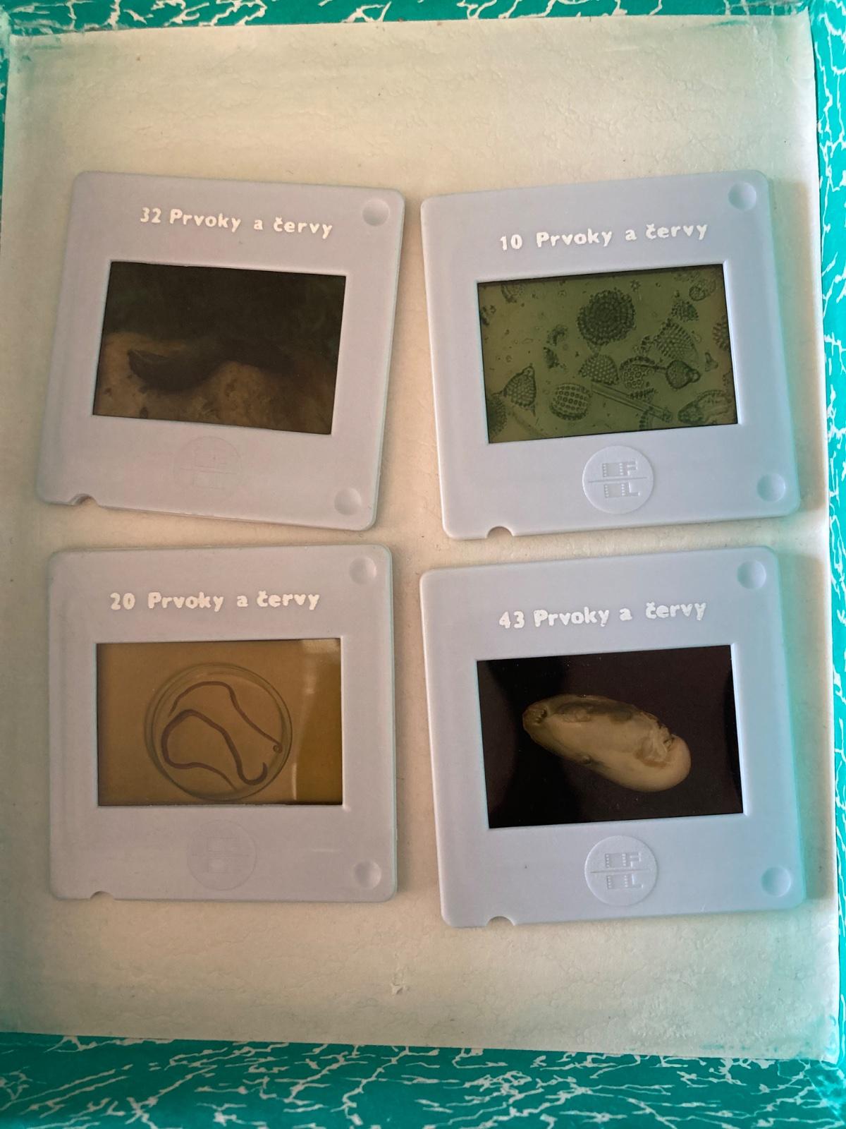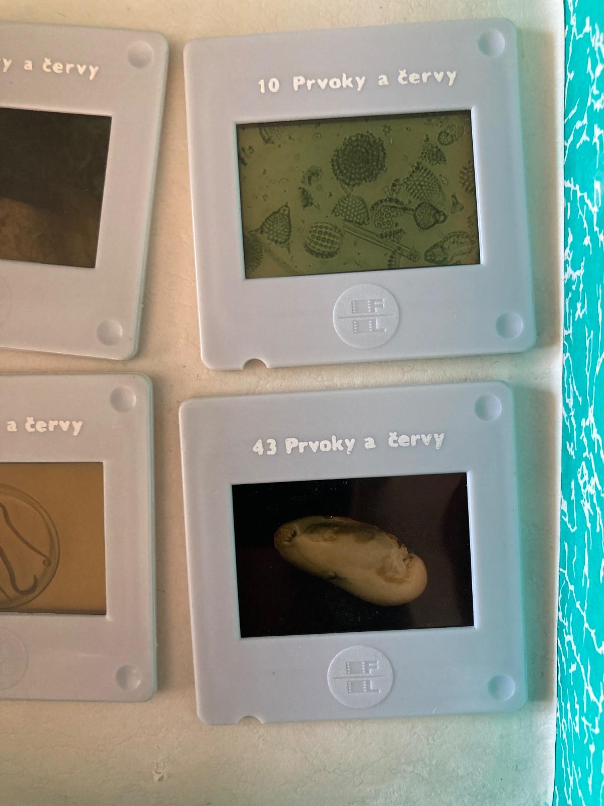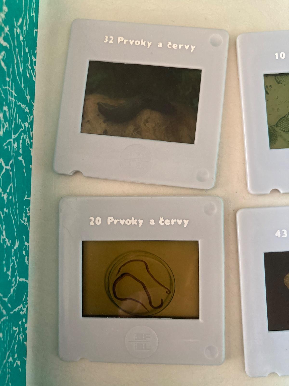 pekný stav, krásny starý retro školský súbor diapozitívov pre prírodopis a biológiu