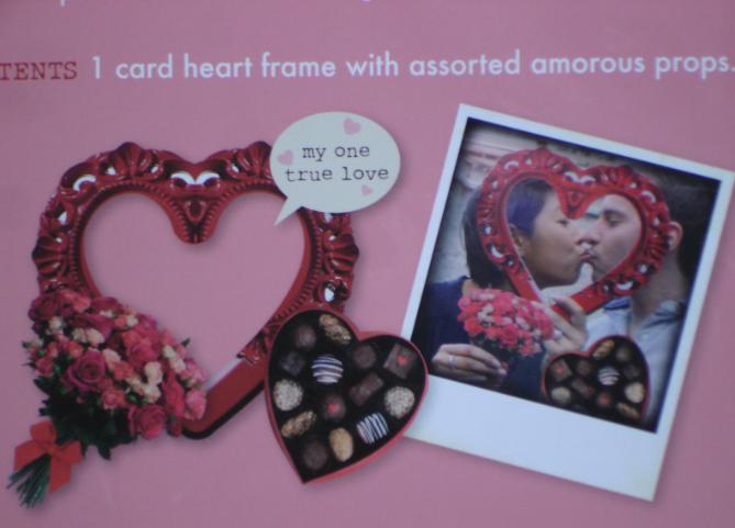 Set obsahuje 4ks: rámik červené srdce, kytica, bonboniera, "My one true love" bublina