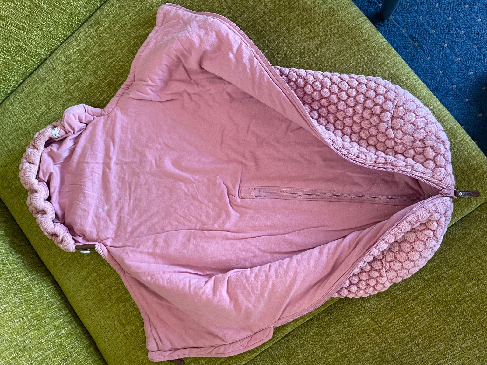 Jedna strana vložky je vyrobená z materiálu typu Rip Stop, ktorý sa veľmi ľahko čistí. Táto stránka je určená na použitie v lete. Po otočení sa vložka zmení na zimnú – je jednofarebná a vyrobená z materiálu, ktorý poskytuje väčší tepelný komfort.