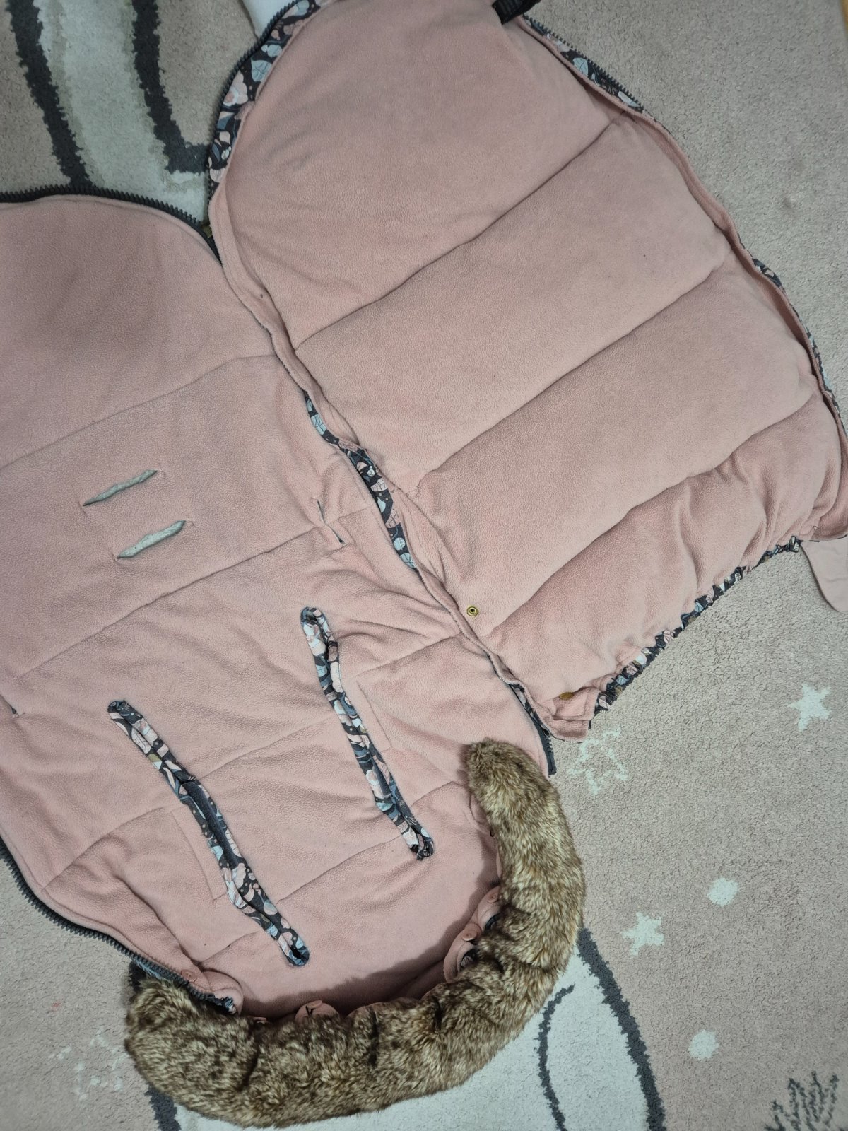 Fusak minimálne používaný. Zips na oboch stranách,kožušina aj mašlička na fusak sa dá odopnúť.
