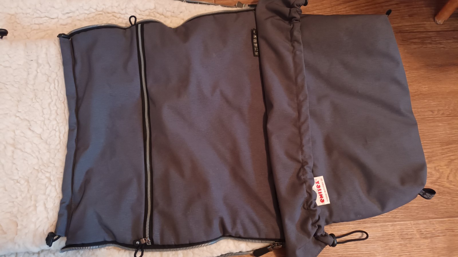 Zimny nepremokavý fusak emitex v top stave . Spodnú časť viete odzipsovat/ prizipsovat podľa veľkosti bábätka / kočiara . Vzadu je protišmyková časť aby sa neposuval v kočíku . Top stav .