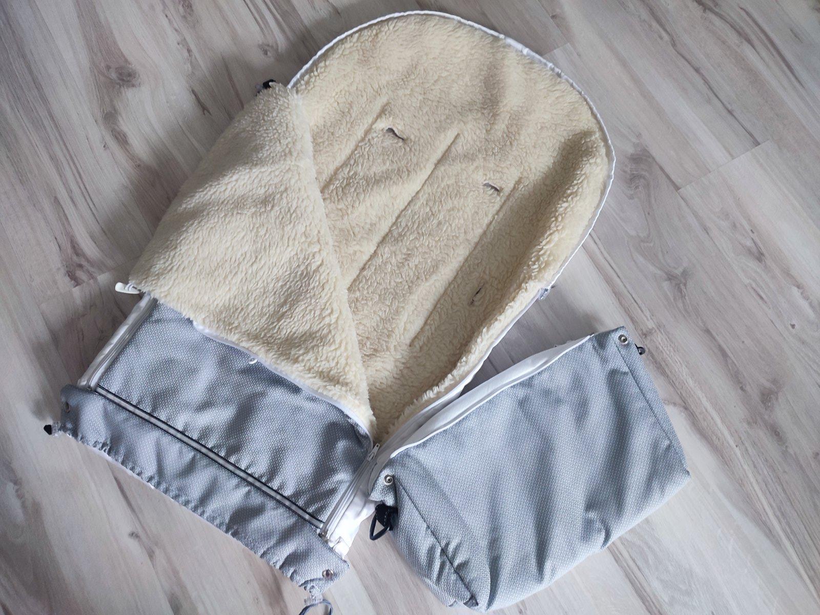 Teplučký fusak využívaný jednu zimu. Vnútri je ovčie rúno.