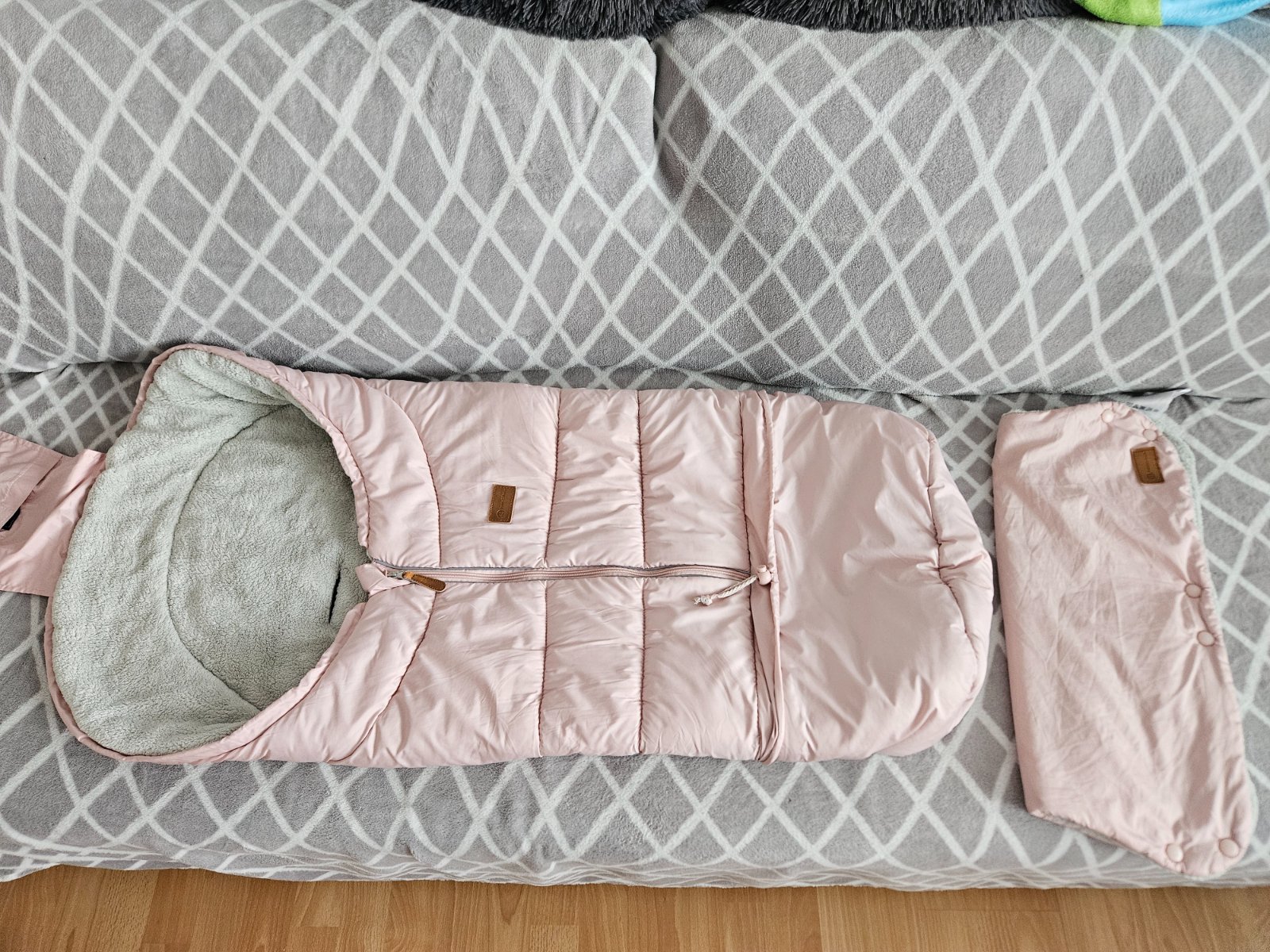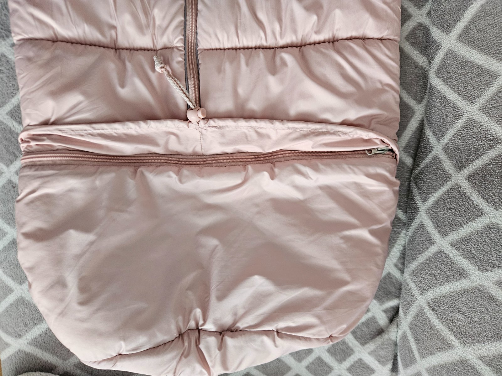 Predam zimny detsky fusak ruzovej farby značky Petite&Mars 3v1 s moznostou predlzenia vhodny do hlbokeho kocika, sportoveho kocika alebo autosedacky.