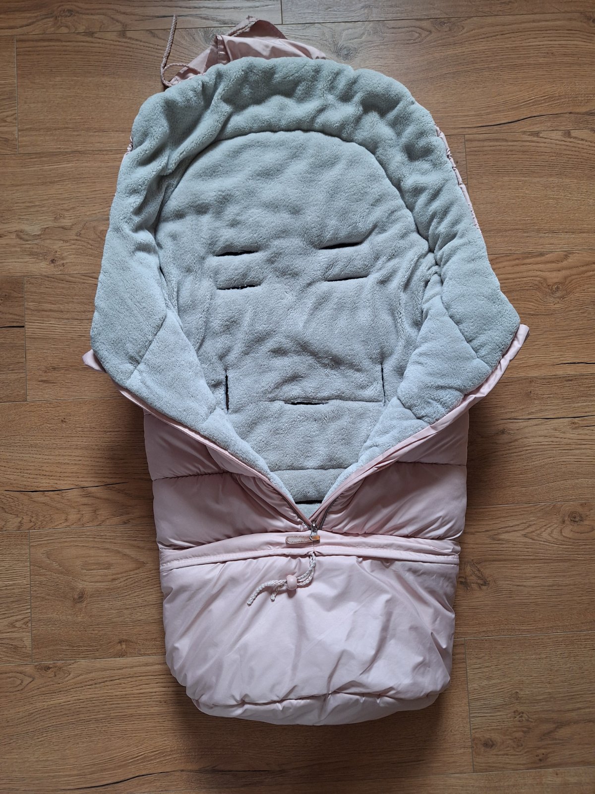 Teply zimný fusak do hlbokeho/ sportoveho kocika Pudrovo ruzova farba Nepremokavy, pekne sedí, neklze vdaka gumovym "bodkam" na chrbtovej strane Spodna cast sa da odzipsovat, skrateny sa moze pouzi...