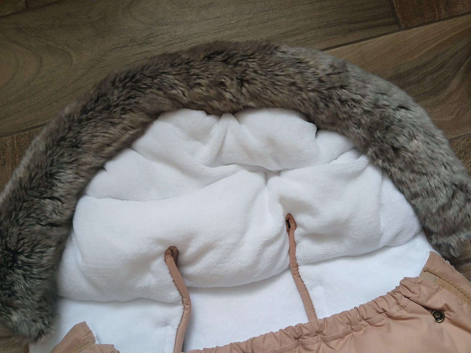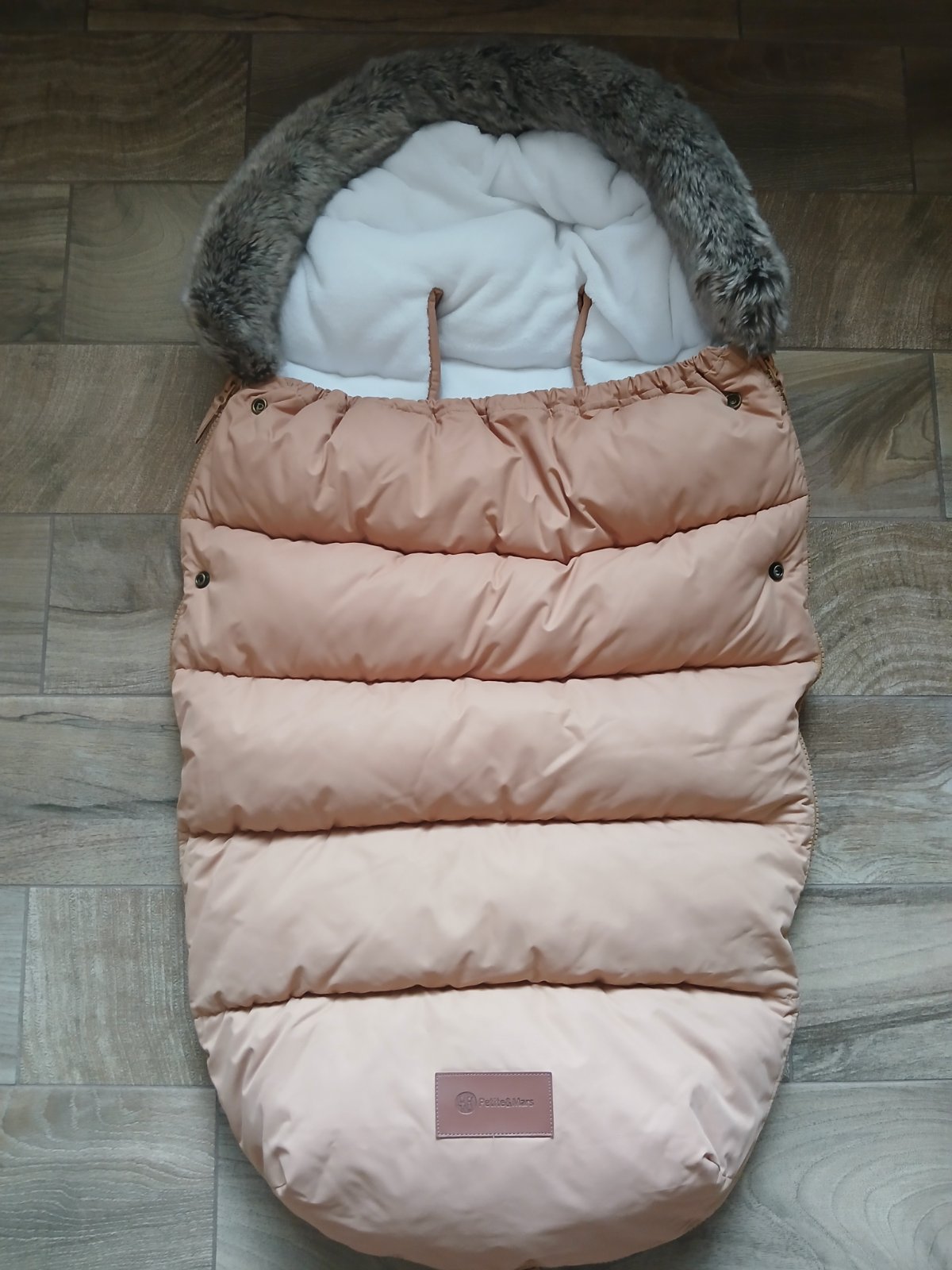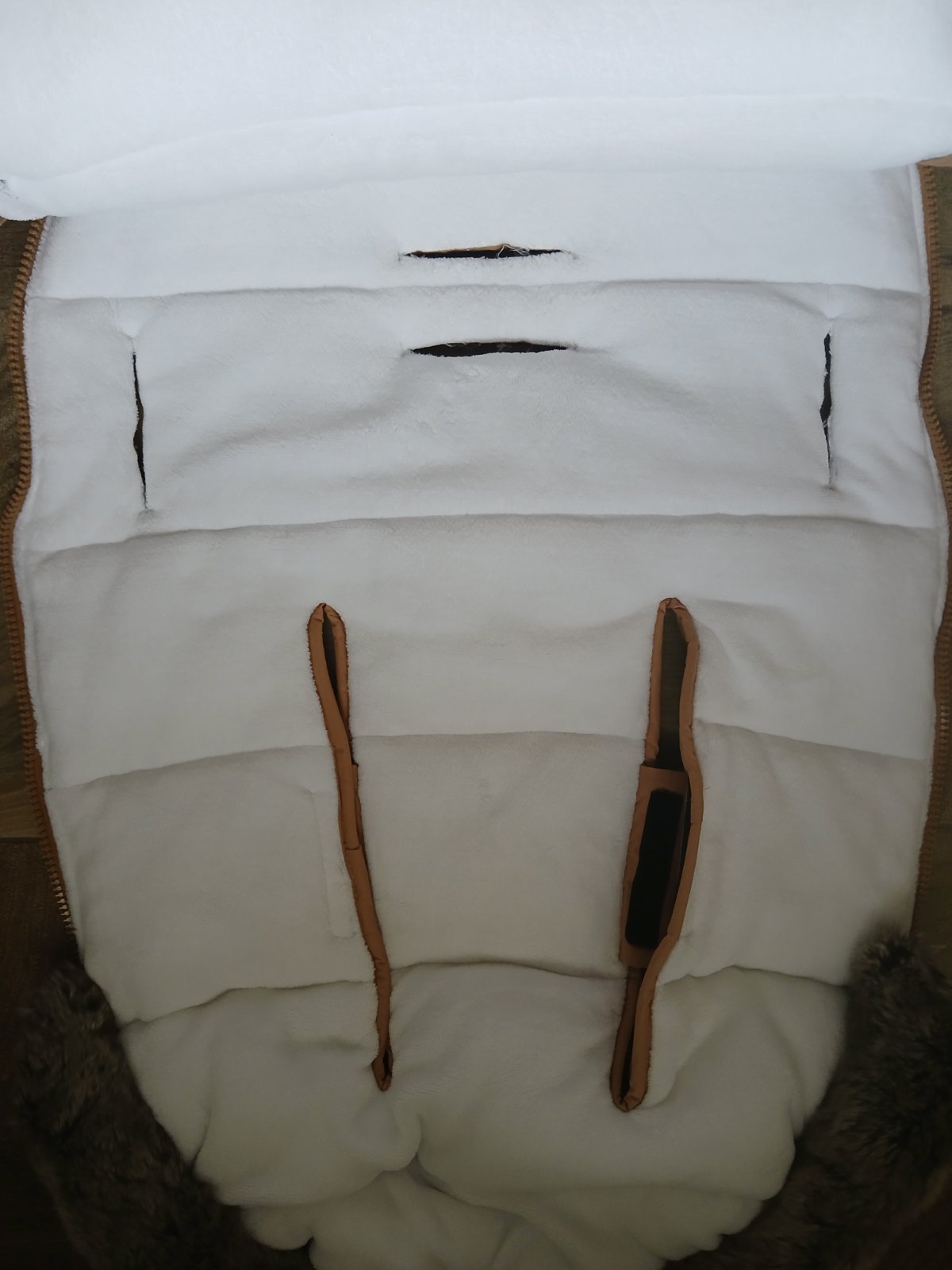 Veľmi príjemne hrejivý fusak do veľkej zimy, vhodný do väčších kočíkov (100×55). Má otvory na popruhy, odnímateľnú kožušinku okolo hlavy na gombíky. Fusak je málo používaný, je ako nový.