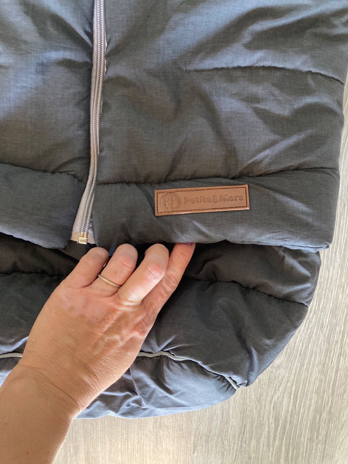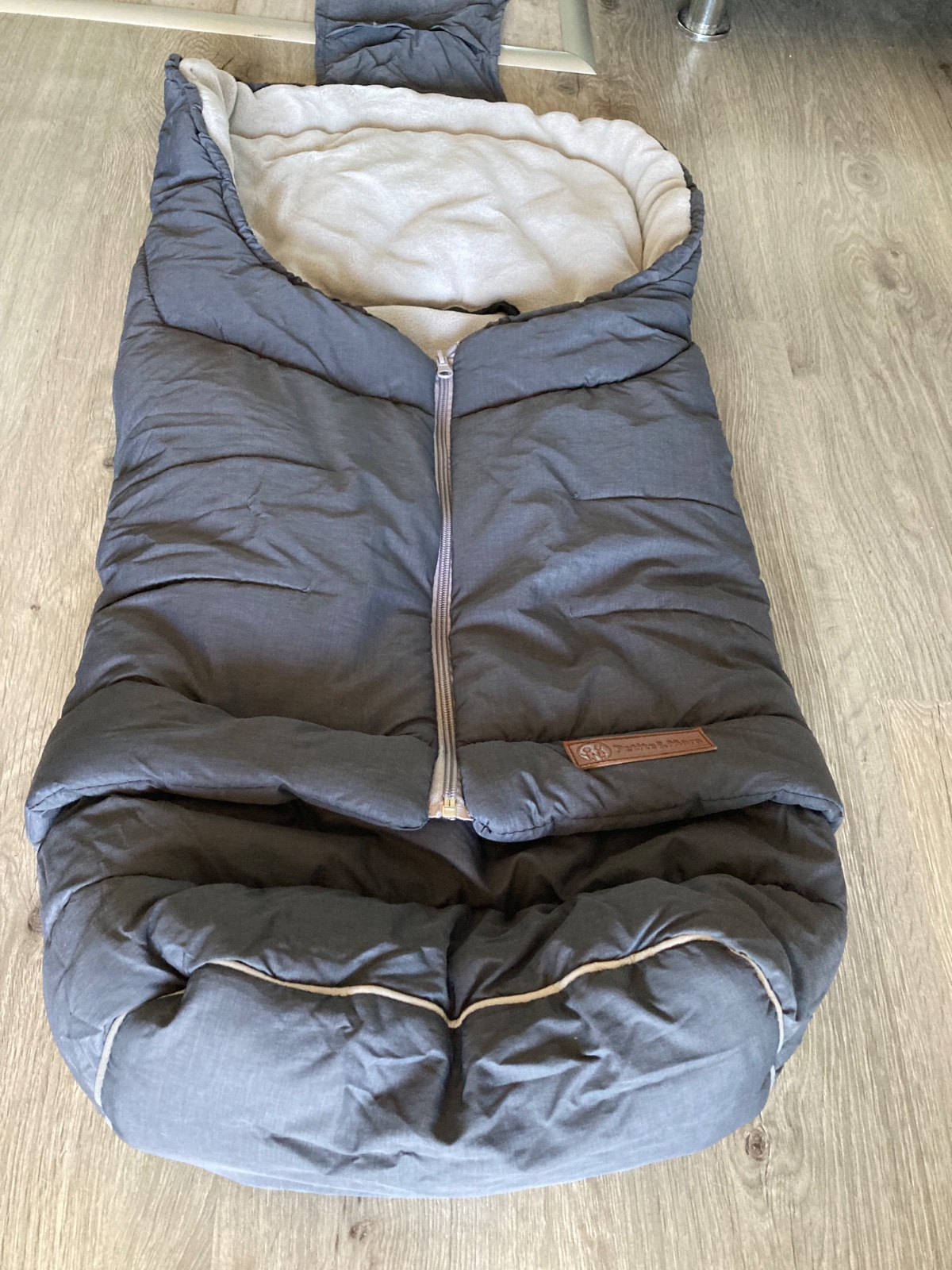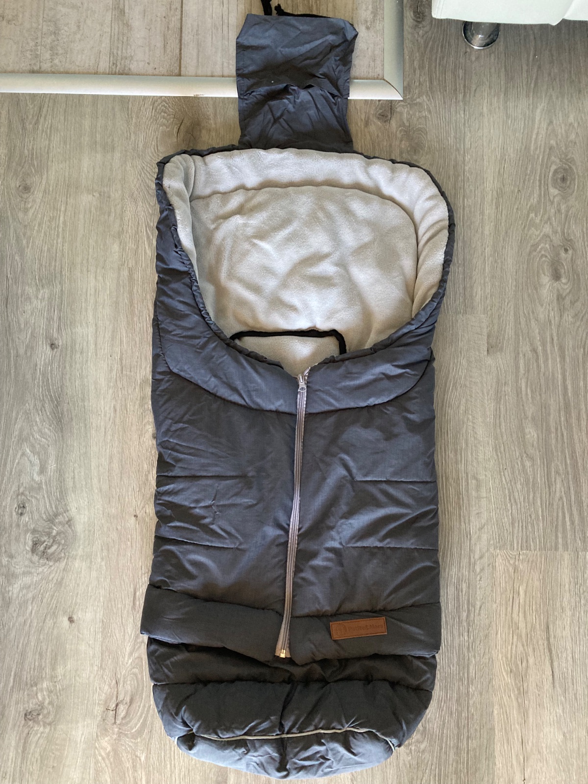 Predám zimný fusak, zn. Petite&Mars, tmavošedej farby. Fusak je zateplený, má na zadnej strane otvory na popruhy na kočíku, v spodnej časti je odnímateľná časť (na zips), ktorou sa dá fusak predĺž...