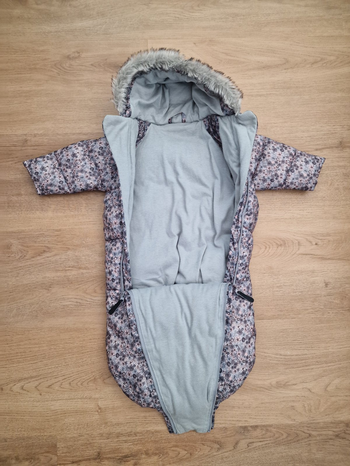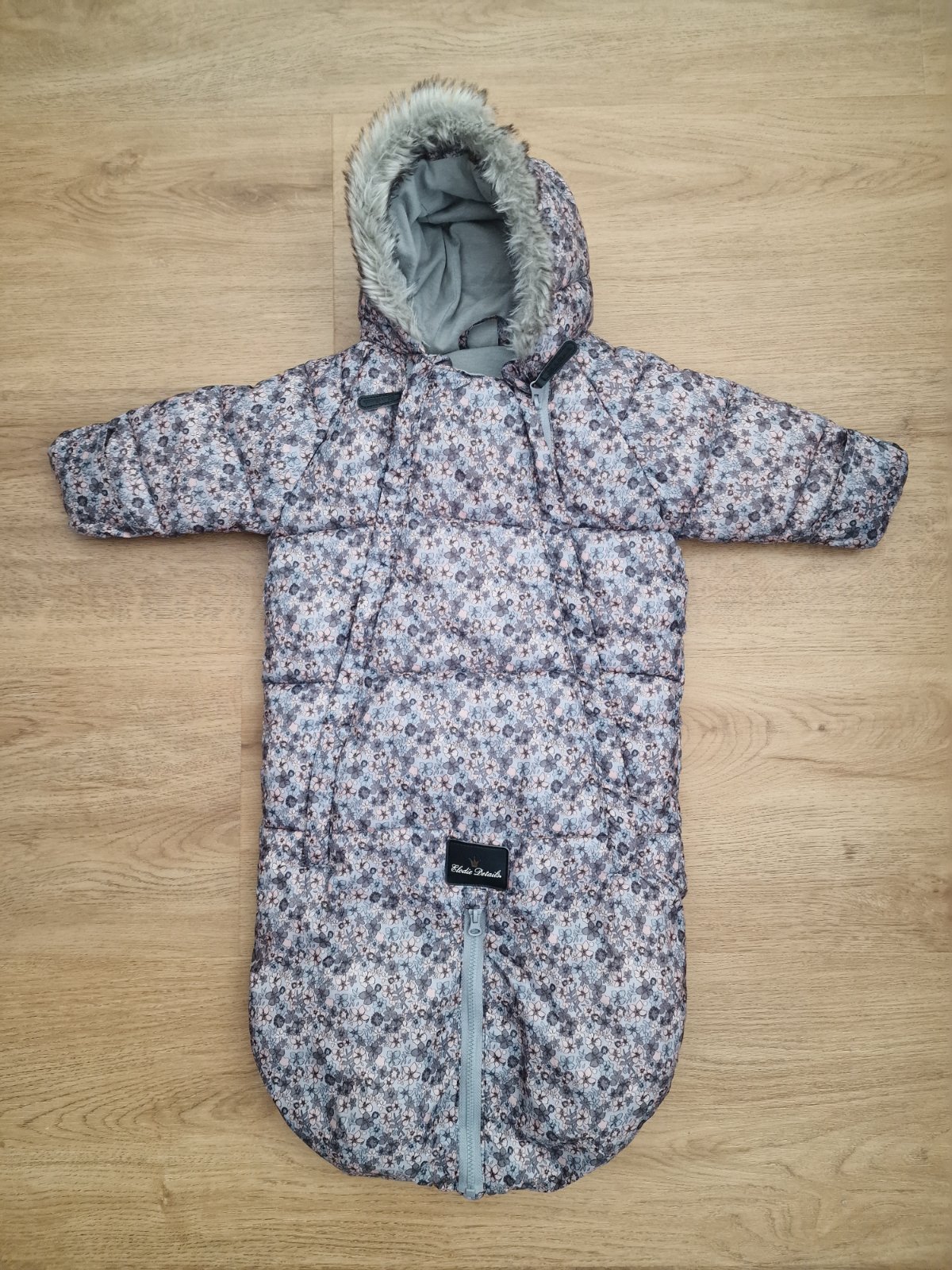 Predám fusak/overalík Elodue Details, veľ. 3 - 6 M. Dĺžka 65 cm. Podšitý šedým úpletom, ohrnovacie rukáviky, kapucka s kožušinkou, zapínanie až ku krku, za nás topka. Cena 12,99 € plus poštovné.