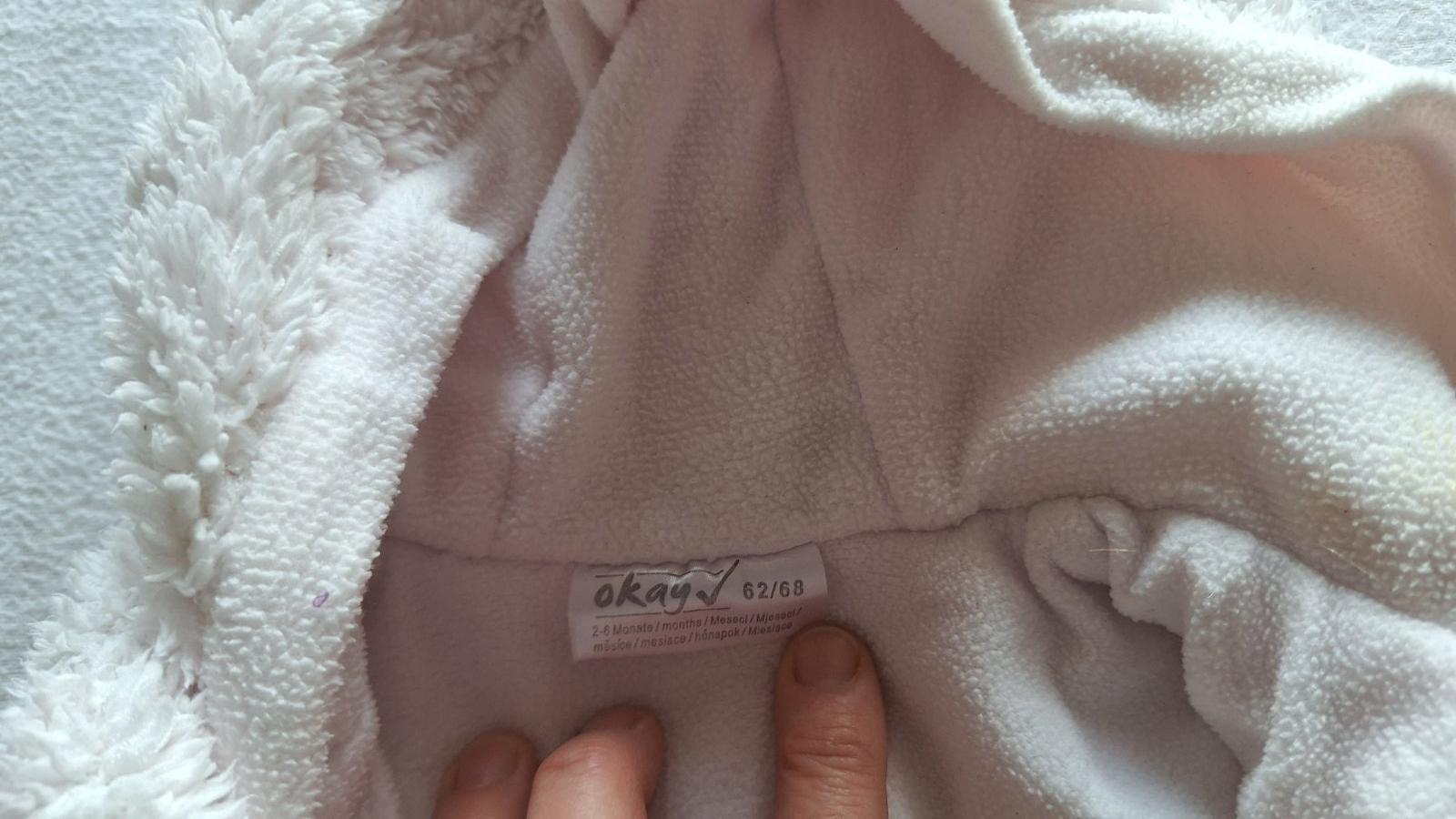 pomeriam celkova dlžka 56cm obvod2*31cm rukav33cm od kapucne pisu velkost 68 ale podla mna tak do 4 mesiacov