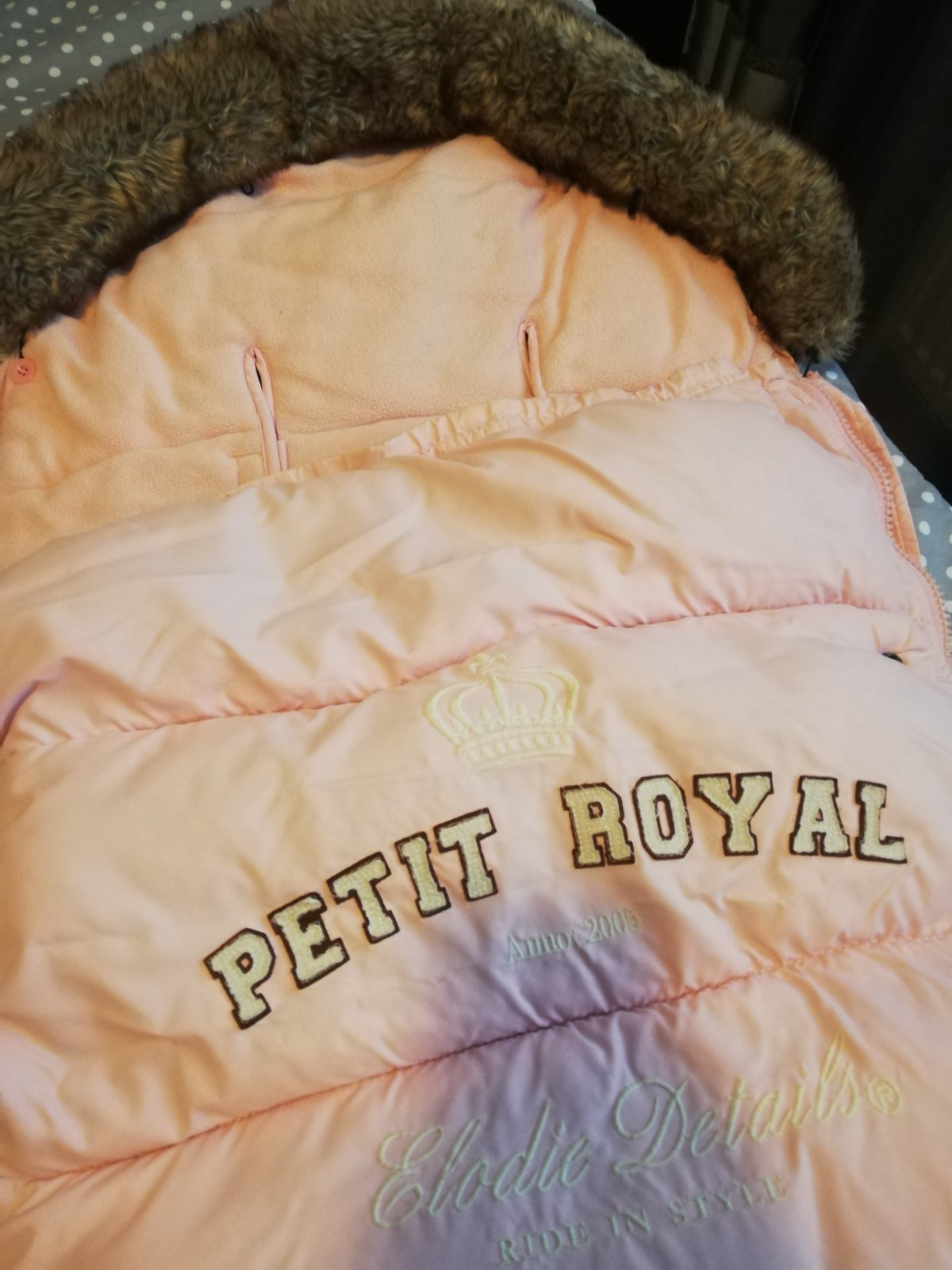 Páperový fusak Elodie, je prirobená kožušina okolo hlavy a z predu fusaku, ktorá sa dá odopnúť. Kožušina je značky Bjällra.