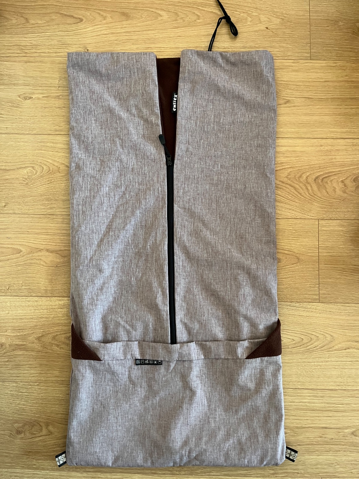 Prechodný fusak, skotočná farba je tmavo hnedá. Po dvoch deťoch. Dá sa rozložiť aj ako deka, nohy sa dajú schovať ako do vrecka, podšité umýlvateľnou šušťákovinou.