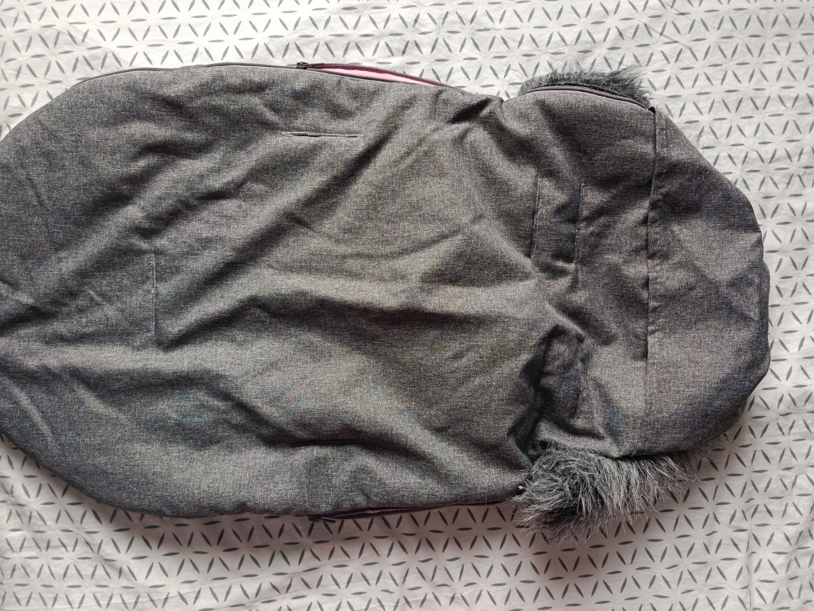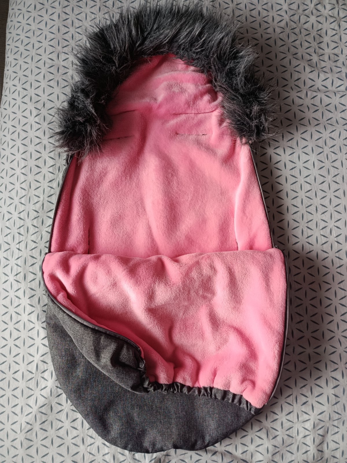 Zimný fusak po 1 dieťati. Nepoškodený, pekný stav. Značka BABAMAM. Dĺžka cca 80cm. Vhodný do hlbokého kočíka.