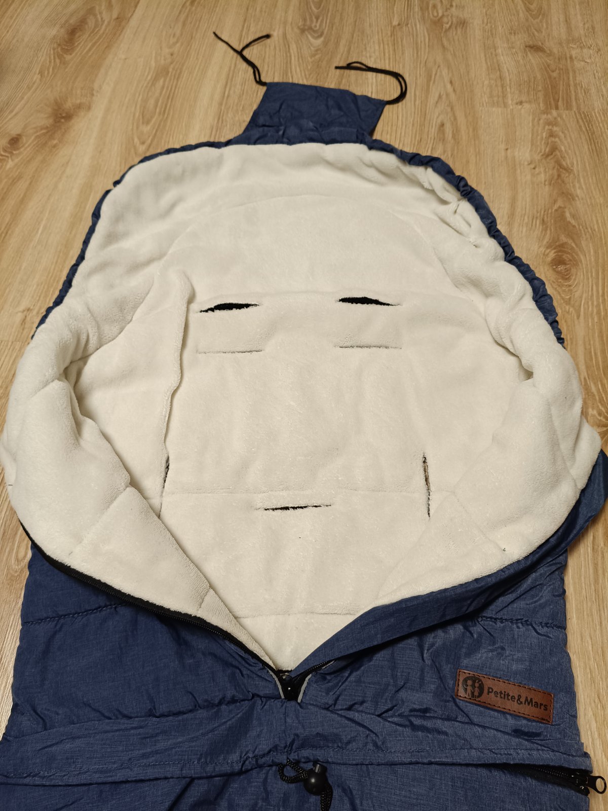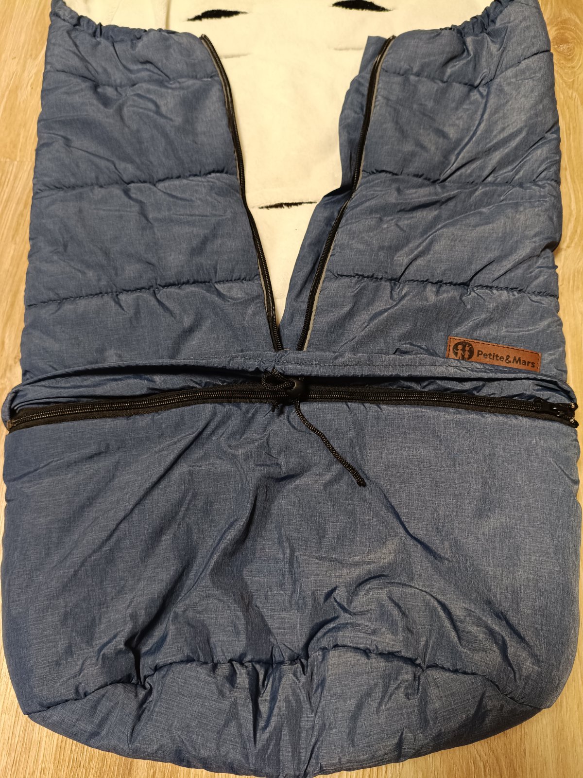 Predám zimný fusak, zn. Petite&Mars, tmavošedej farby. Fusak je zateplený, má na zadnej strane otvory na popruhy na kočíku, v spodnej časti je odnímateľná časť (na zips), ktorou sa dá fusak predĺž...
