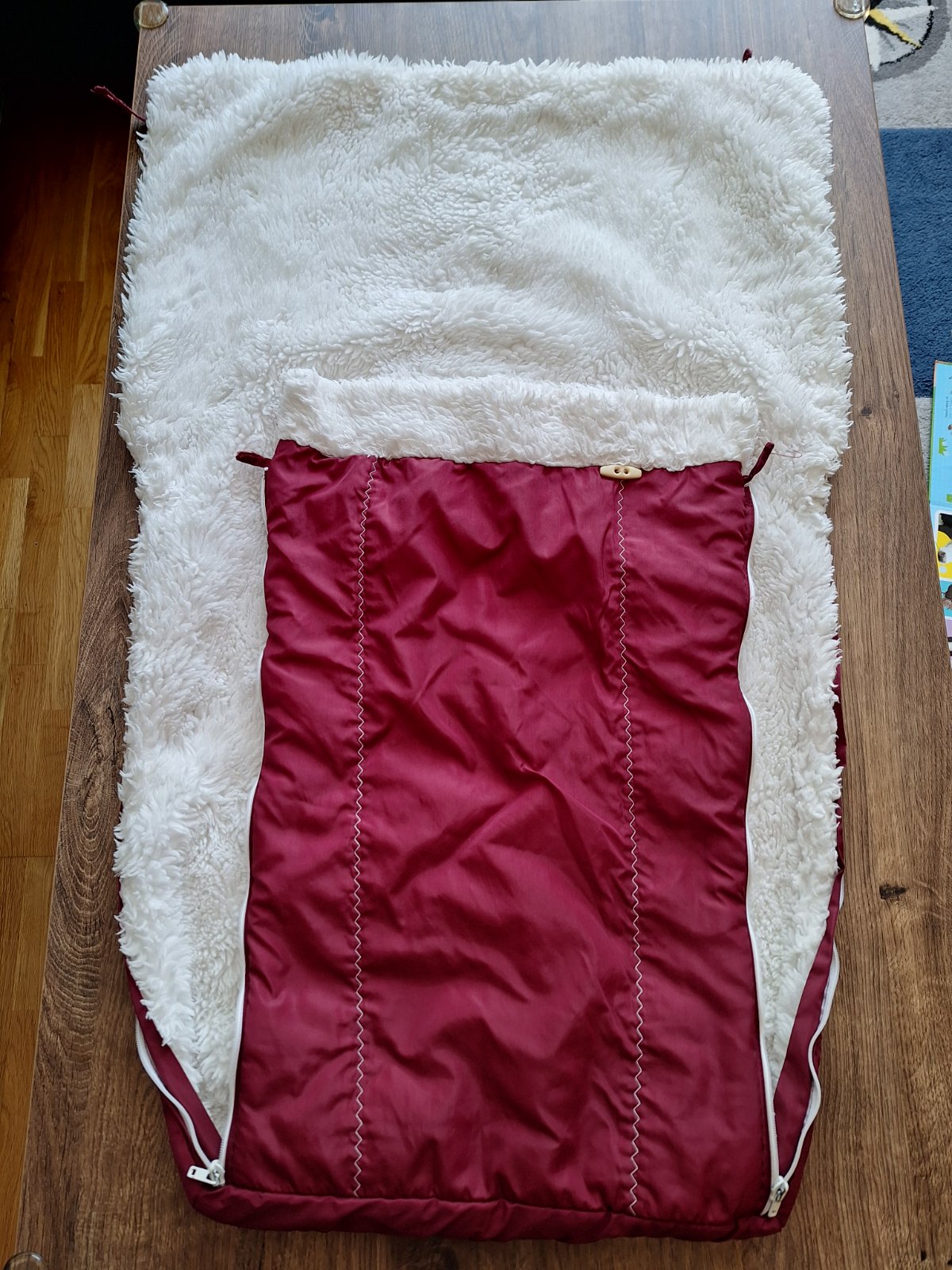 Predám funkčný a čistý ( minuly rok bol v čistiarní) retro fusak do kočíka alebo saní. Fusak je bordovo červenej farby vhodný pre obe pohlavia. Cena je 10 EUR + postovne, najlepsie osobný odber.