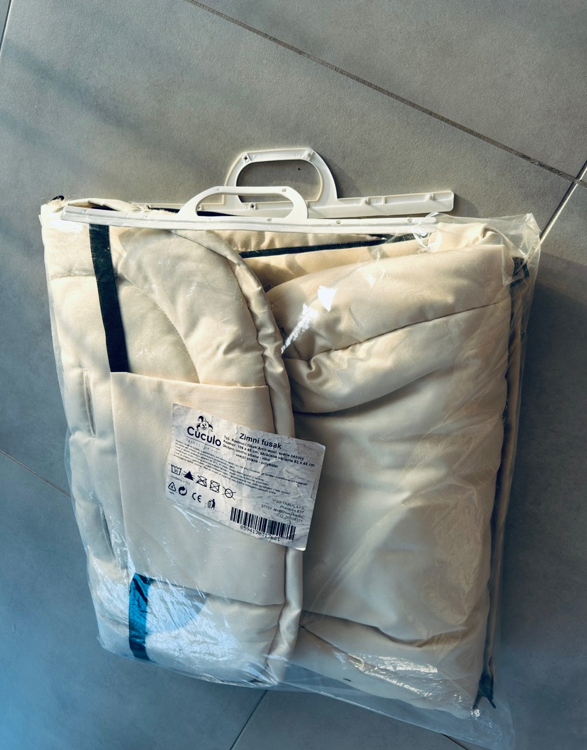 Asi 2x použitý teplučký fusak do kočíka/vajíčka veľkosť 62/68 (skôr by som povedala, že 68 až 74). Top stav!