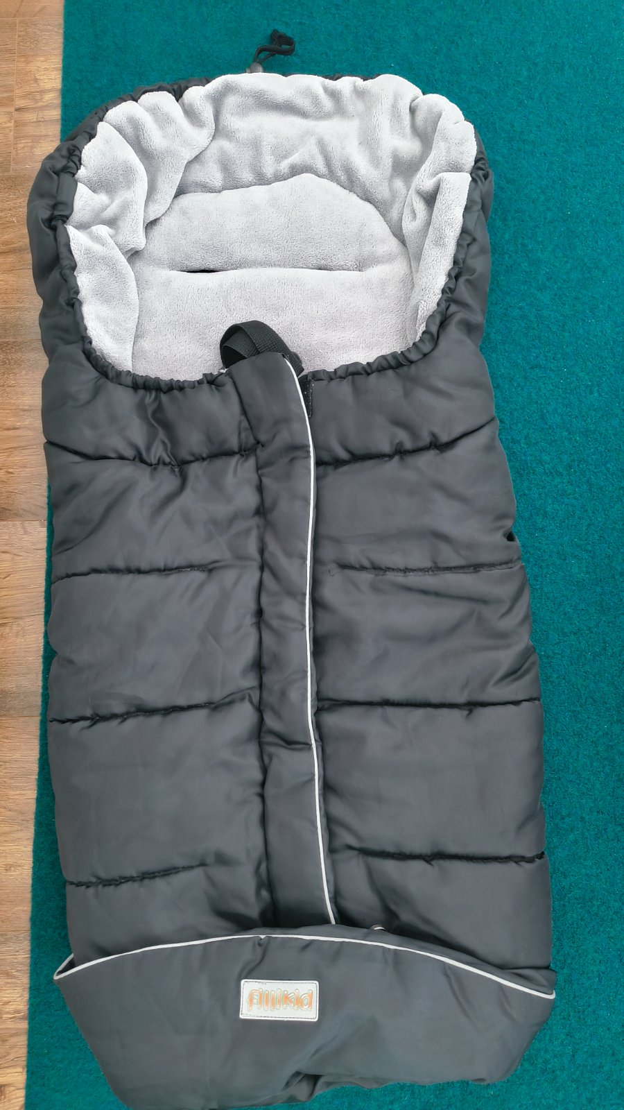 Predám fusák Fillikid, čiernej farby, teplúčky, z opačnej strany otvory na bezpečnostné pásy, veľ. dlžka: 98 cm, šírka: 50x2, vo vnútry hrejivý flis, z opračnej strany fusáka protišmýková úprava.