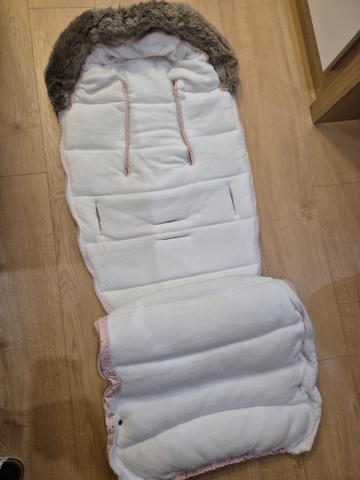 Teply zimný fusak do hlbokeho/ sportoveho kocika Pudrovo ruzova farba Nepremokavy, pekne sedí, neklze vdaka gumovym "bodkam" na chrbtovej strane Spodna cast sa da odzipsovat, skrateny sa moze pouzi...
