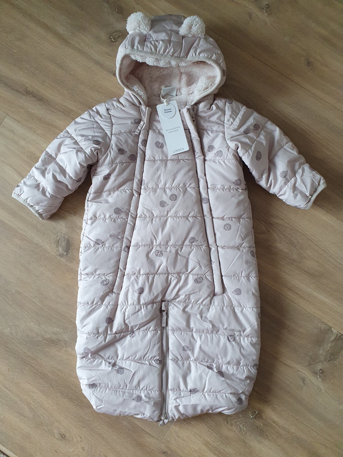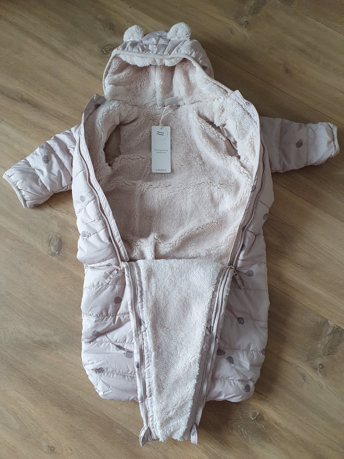 Kombinéza/fusak/overal vhodna do kocika aj do autosedacky. Nozky sa daju zazipsovat samostatne. Rucky sa daju prekryt. Kapucna s uskami. Flisova podsivka.