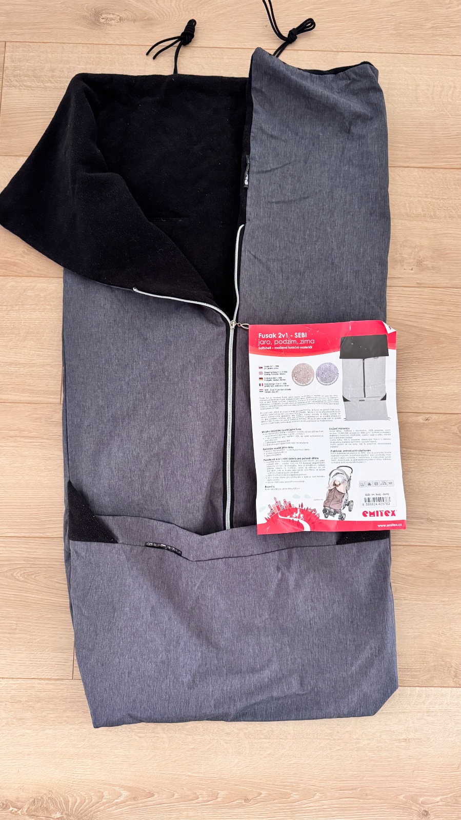 Softshellovy fusak do kocika znacka Emitex, jesen/zima/jar, vodeodolný, protivetru, vnutro je zateplene flisom, vyuzivane 1 sezonu, uplne bez poskodenia.Da sa spodok rozipsovat, cize vyuzijete dlhsie, nozicky mozu ost von a telo dietat je zakryte. Alebo zazipsovat, spodok je zahnuty a tympadom je dieta cele vo vnutri, je dostatocne dlhy, zapnete az po krk aj vyssie. Ocenite ho velmi.
