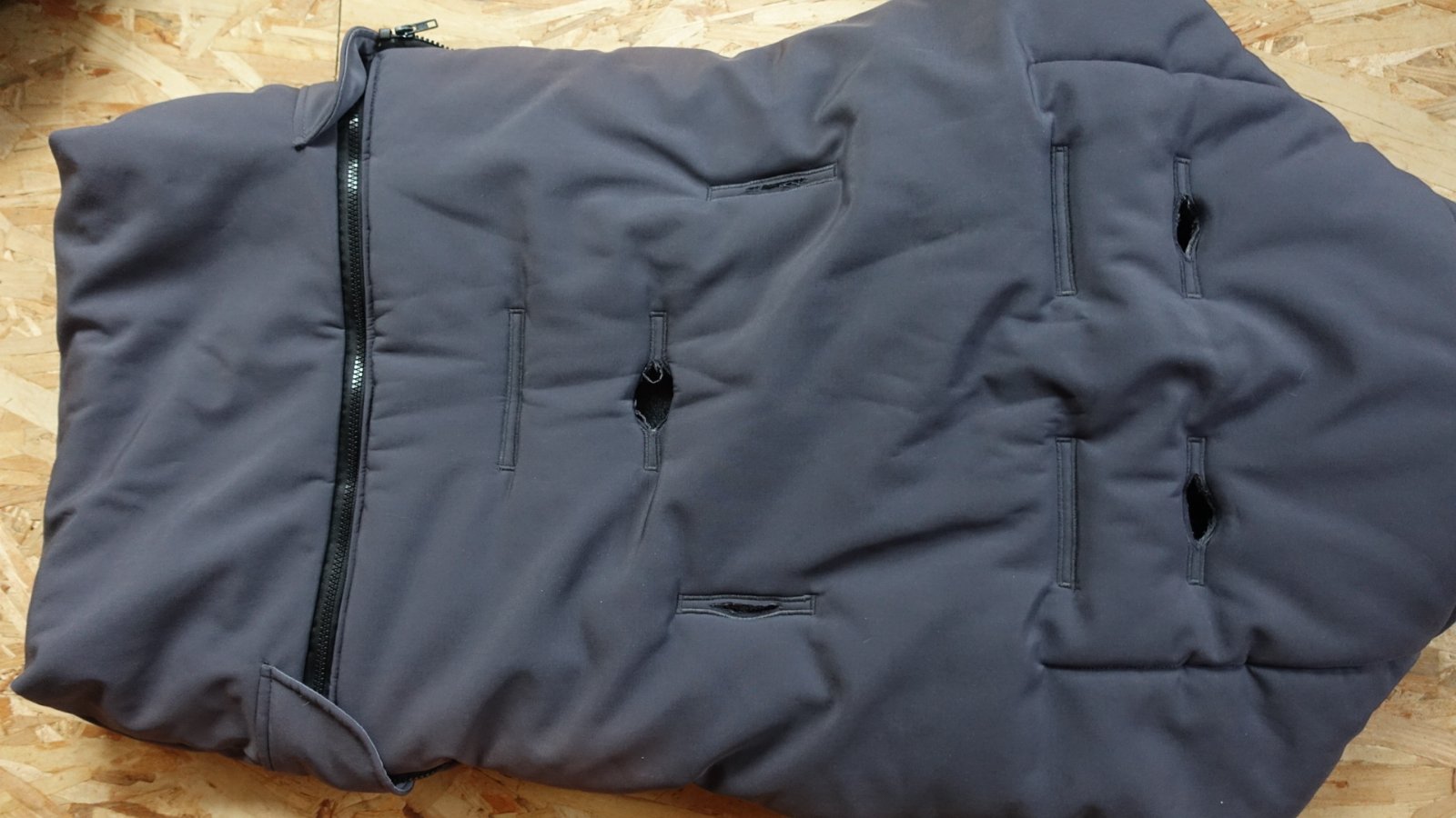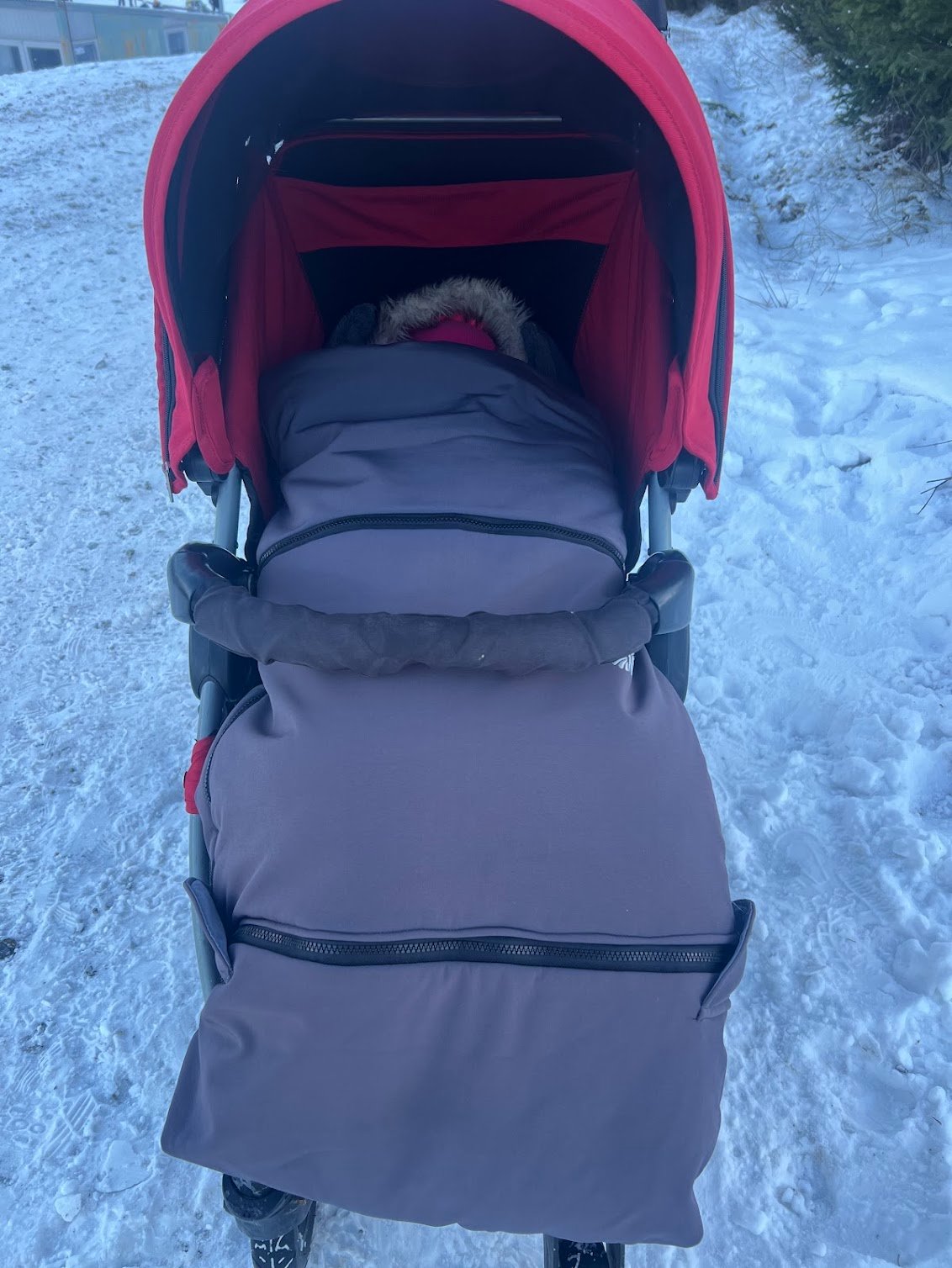 Teplucky nami oblubeny zimny fusak do kocika. Vyuzili sme od narodenia, zmestila sa v pohode v zime aj 3 a pol ročná dcérka, keď sme výnimočne potrebovali kočík na spanie na zimnej dovolenke. Otvory na popruhy zaistia ze bez problemov zaistite dietatko aj v kociku vo fusaku. Vrchna cast sa da zopnut, vyuzili sme pri tuhych zimach, chrani pred studenym vetrom. Vpredu je ulozny priestor na rukavicky, ciapku, cokolvek..na zips. Veľmi príjemný materiál, zvnútra mäkučký a teplý, zvonku softshel neprefúka. Povodna cena 70 eur.
