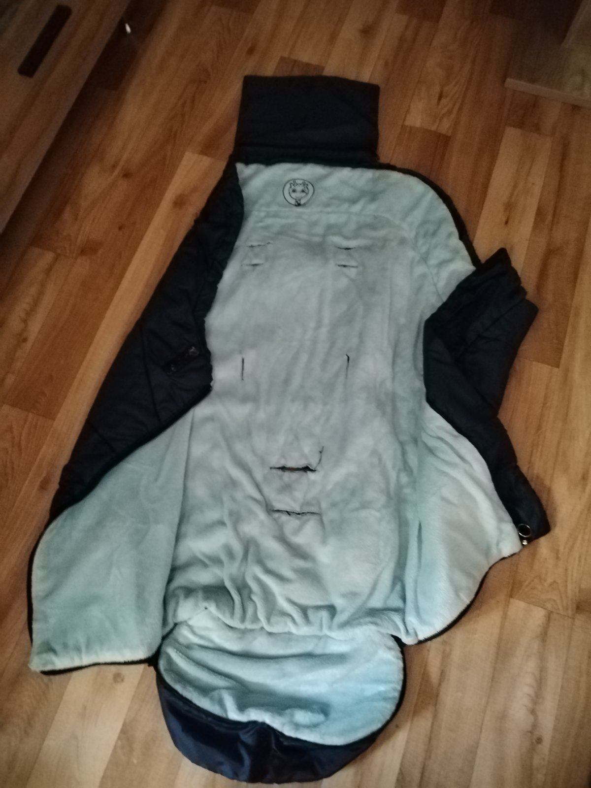 Teplučký fusak vhodný aj do kočíka pre miminko alebo na sánky. Je kvalitný a veľmi zachovalý. Dá sa prispôsobiť do kočíka (viď foto), rozopnúť po oboch stranách, je na ňom malé vrecúško. Zipsy funk...