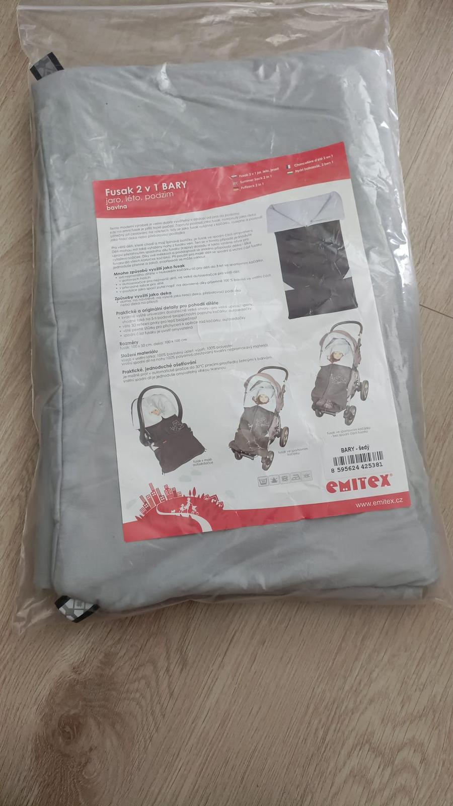 Veľmi šikovný jarný fusak Emitex v neutrálnej svetlosivej farbe s výšivkou detí. Nevyblednutý, v takmer 100% stave. Použuteľny do autosedačky, kočíka a aj ako deka. Aj pre väčšie deti, spodok sa dá odklopiť.