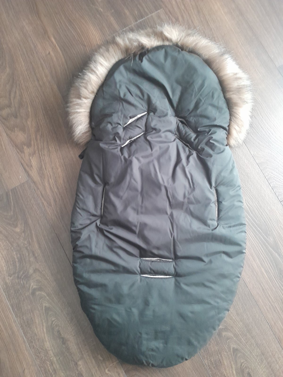 Predám málo používaný fusak do kočíka značky Floo for baby. Fusak je čiernej farby s hnedou kožušinou a hnedým teplým vnútrom. Má zipsy po oboch stranách a výrezy na bezpečnostné pásy. Je vhodný do vaničky aj športovej časti kočíka. Veľmi praktický aj skladný.