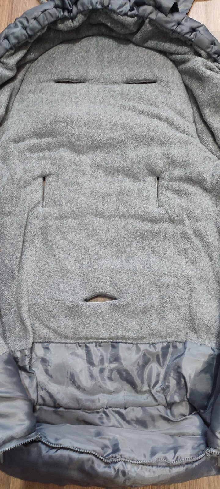 Predám spolu dva kusy fusakov na zimu. Zelený fusak je v peknom stave, využiteľný nielen do vajíčka, akurát sa zmestí aj do hlbokej časti kočíka. Sivý hrubý fusak je vhodný do športového kočíka. Využiteľný naozaj dlho, keďže spodná časť sa dá odzipsovať a dlhé nohy dieťatka tak môžu vytŕčať. Bol používaný, no je stále funkčný. Chyby nafotené (zatiahnutý zvnútra pri nožičkách od topánok, zo zadnej strany povypadávali protišmykové guličky.)