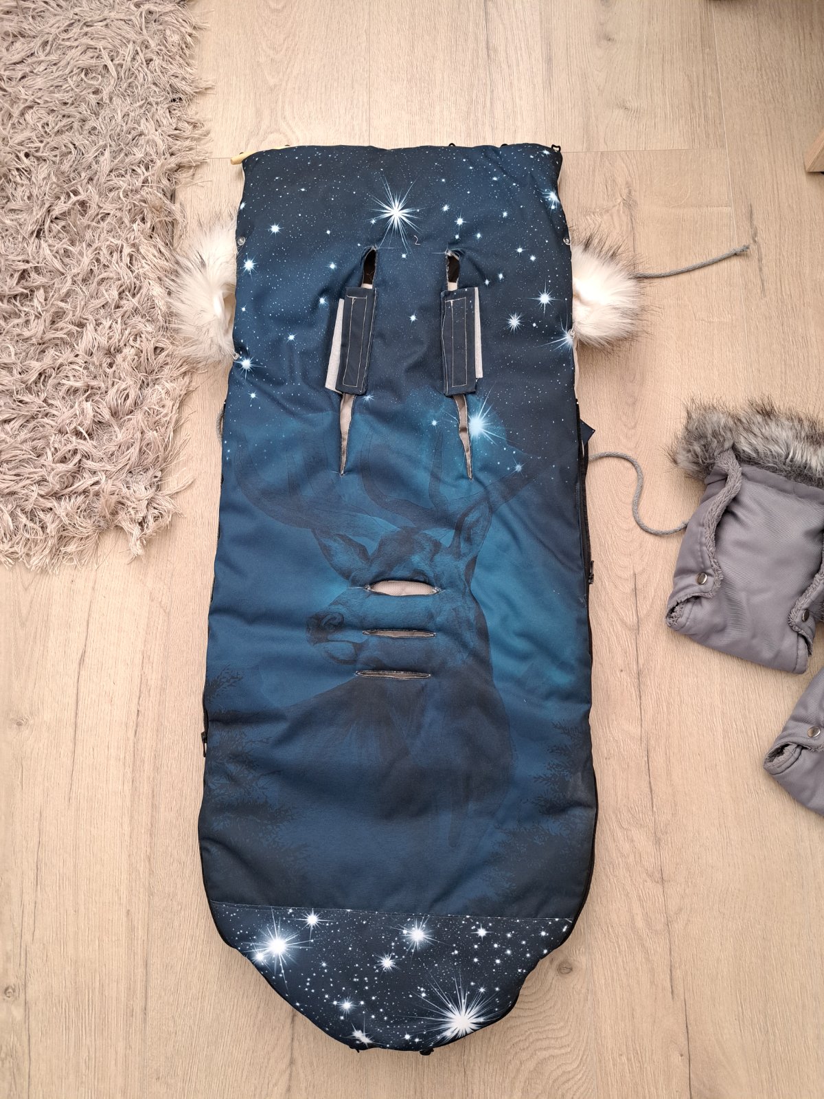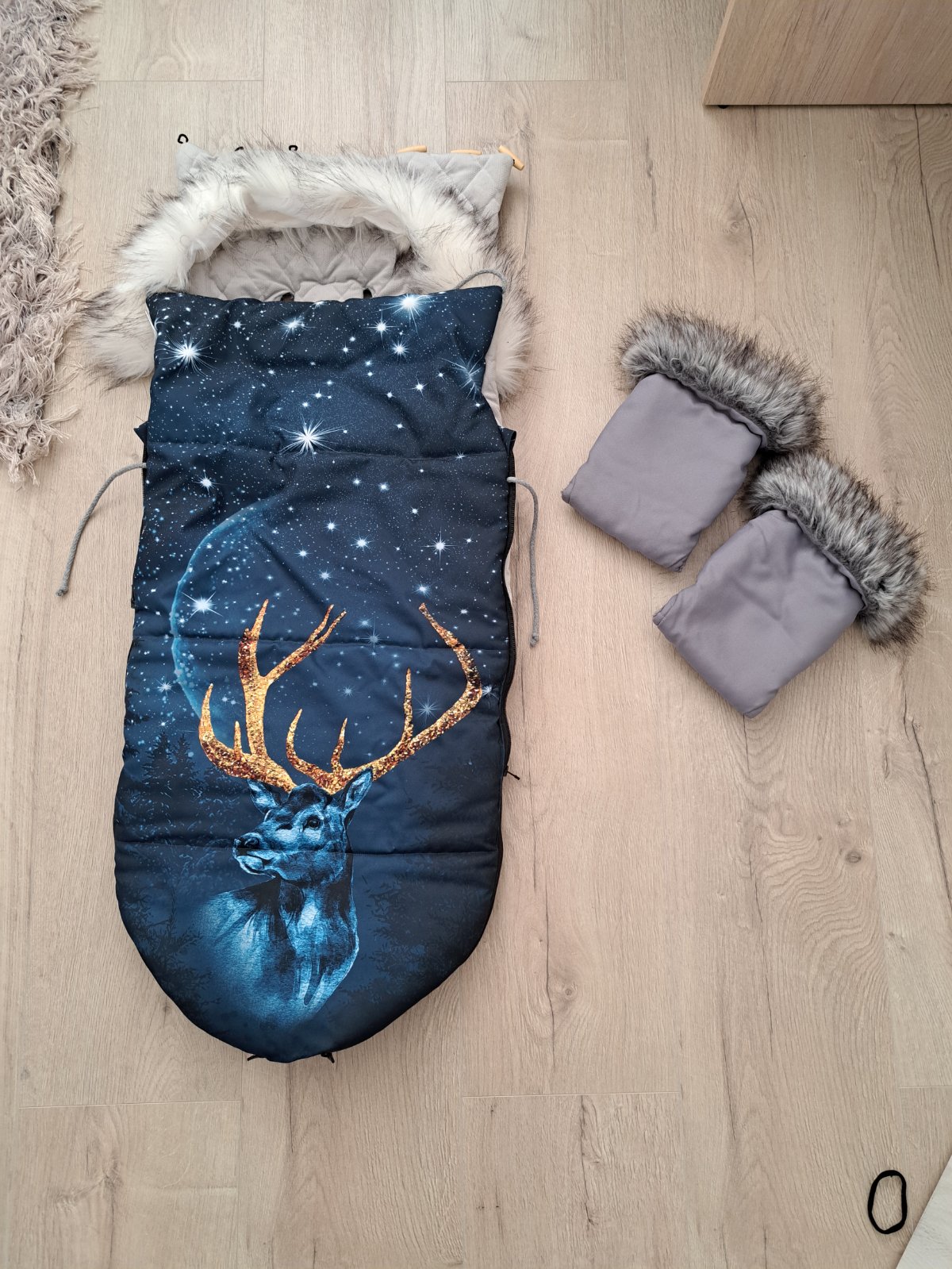 Zimný fusak Jelen s kožusinou, rukavniky na kočik