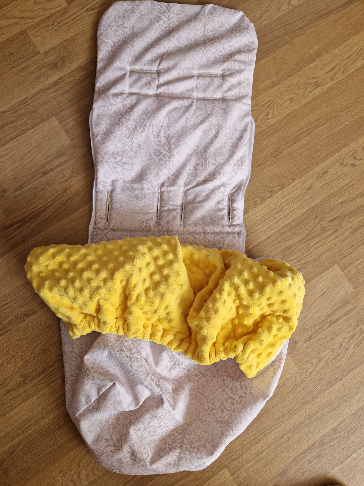 Zlta unisex deka do vajicka, otvory na popruhy, zips + cvoky na dokladne zakrytie. Nosene 2 detmi vo vajicku, ale bez poskodeni.