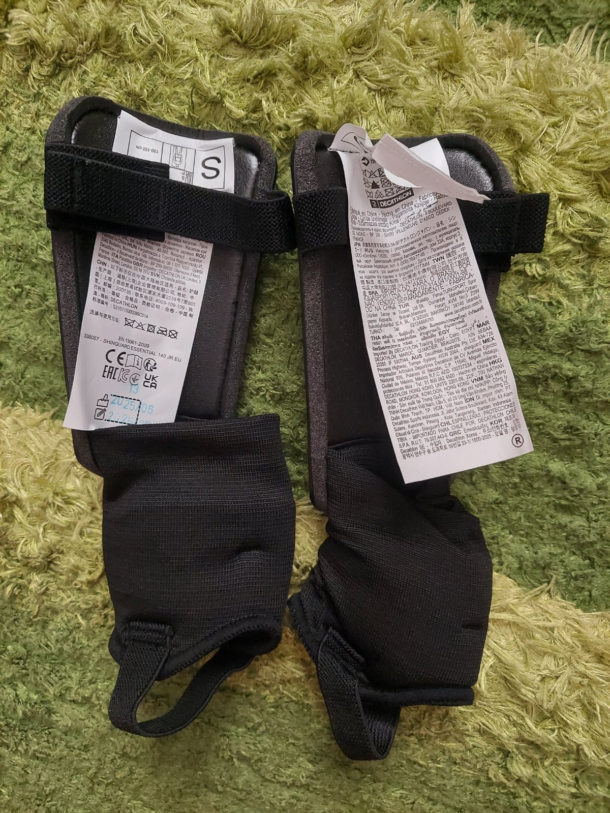Detské futbalové chrániče píšťaly essential 100 čierne Decathlon neposkodene, velkost S