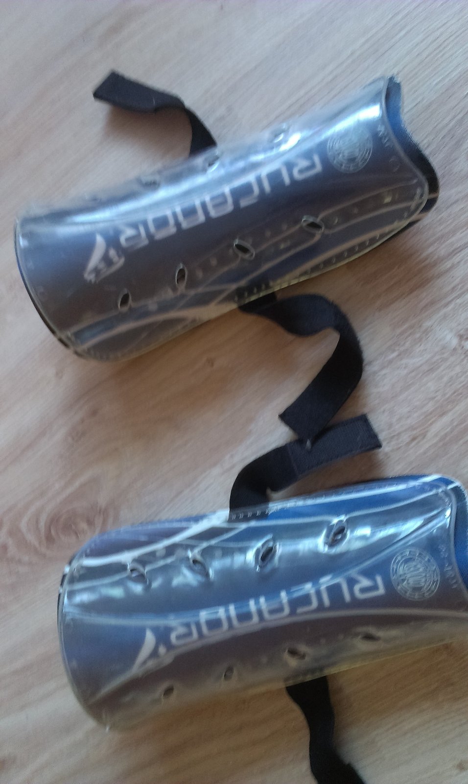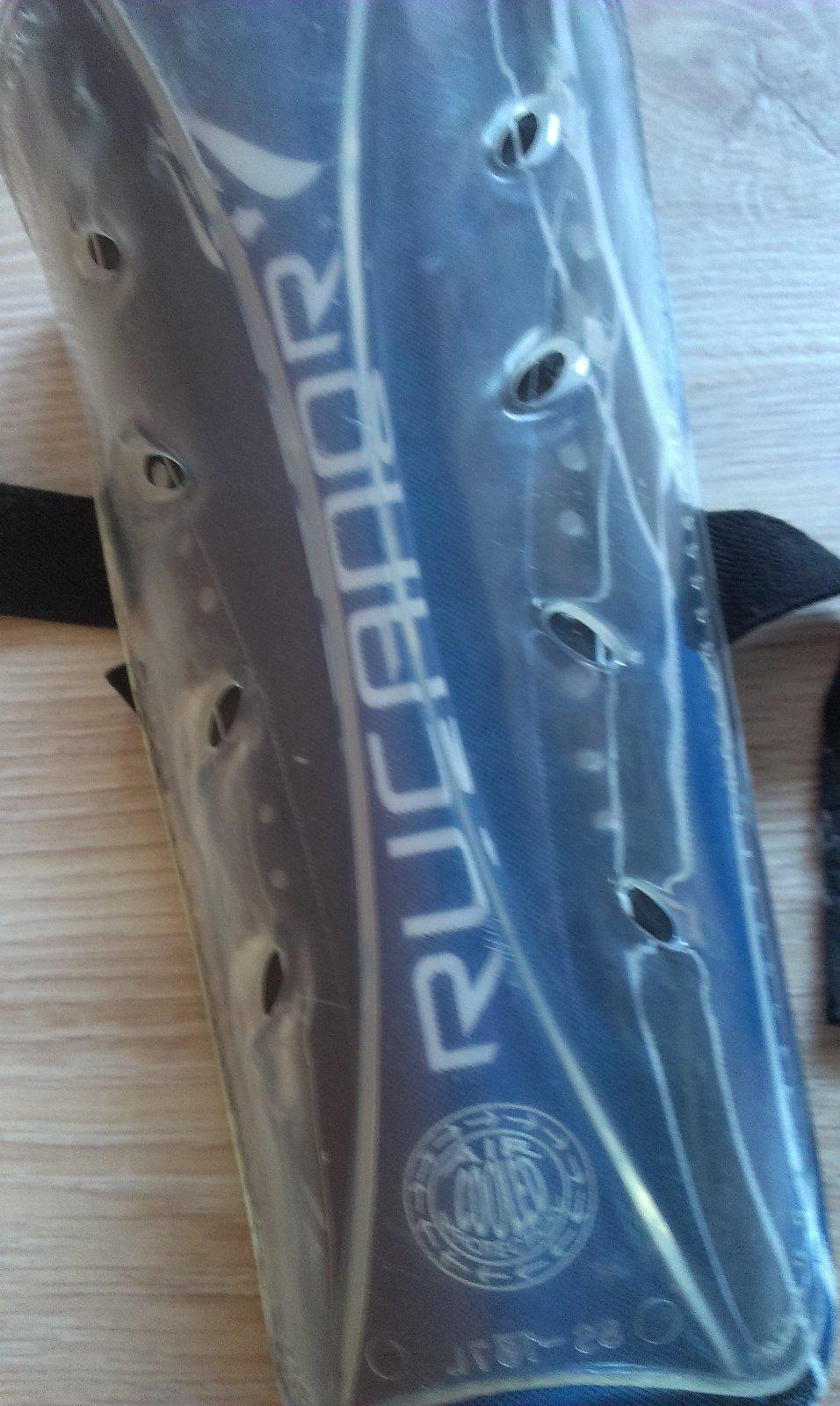Futbalové chrániče RUCANOR priehľadný štít, penová vypchávka, elastický pás, vzduchový ochladzovací systém, neviem na tom nájsť uvedenú veľkosť, ale syn ich nosil v siedmom ročníku na futbal, majú málinko prasknutú tú penovú vypchávku, pozri na detailnej fotke, je to len na jednej nohe inak sú bez chyby. Značkové kúpené v športovom obchode.