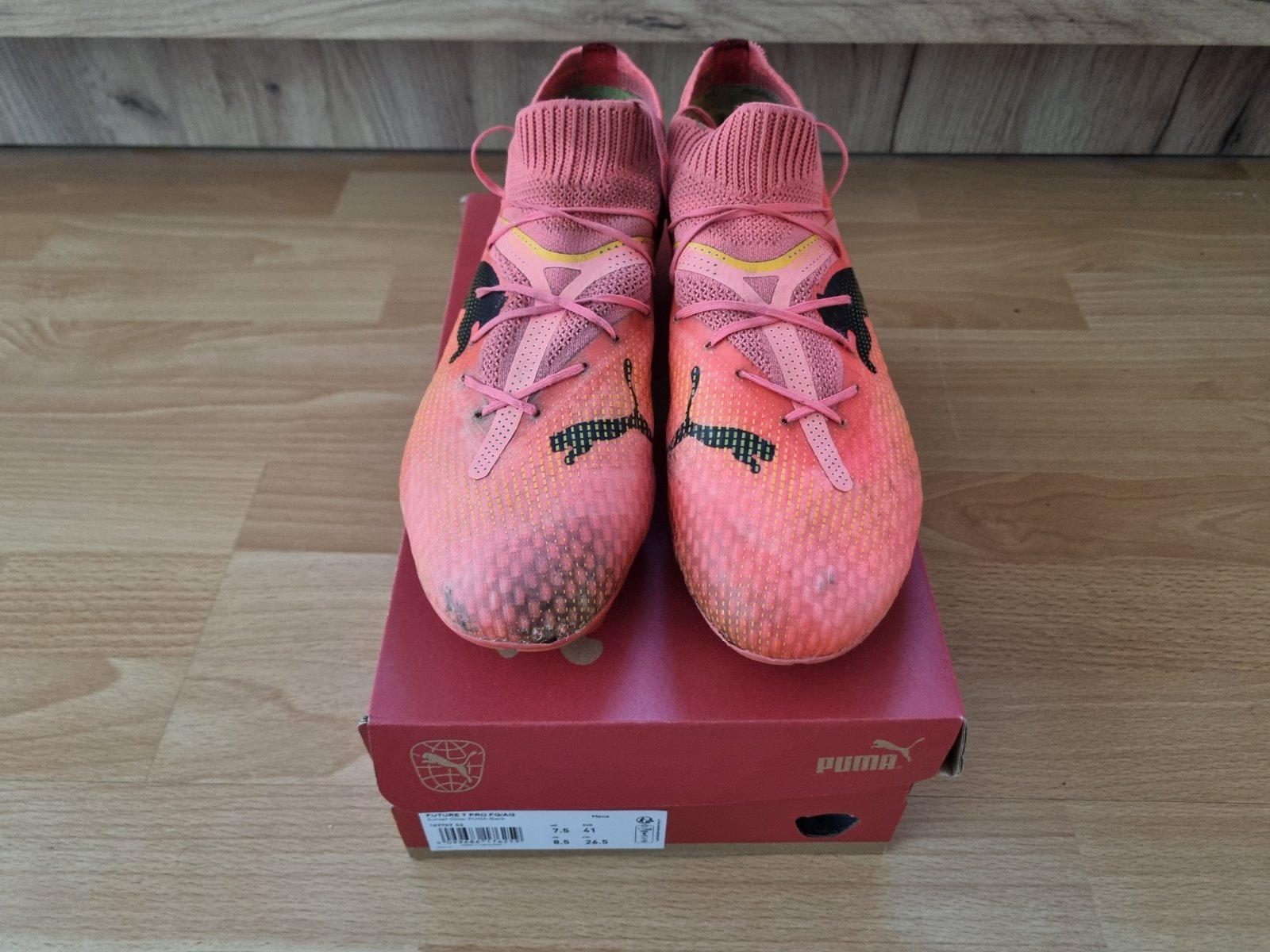 Pánske/chlapčenské/detské futbalové kopačky/lisovky zn. Puma Future 7 Pro FG/AG, veľkosť 41, US 8,5 UK 7,5. Vnútorná dĺžka 26,5 cm.
