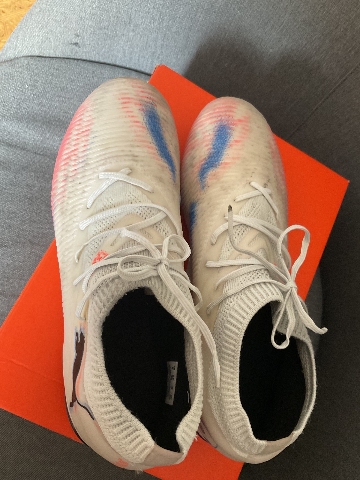 Ponúkam tieto kolíkové kopačky Puma evoSpeed, v neónovo oranžovo - čierno - bielom prevedení, 6 kolíkové, v pôvodnom balení. Veľkosť UK13, US14, EUR 48 1/2. Cena 35€.