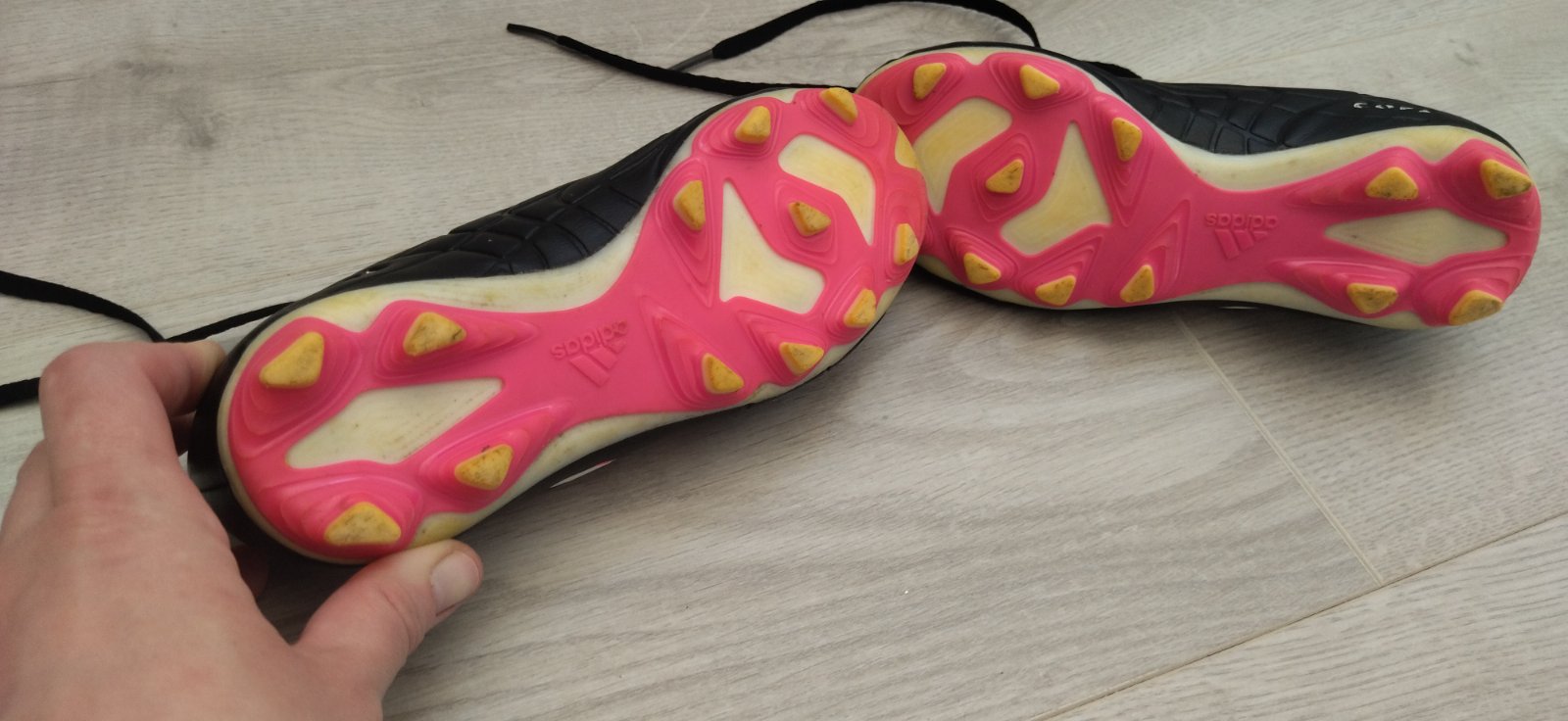 Nosené mojím synom Píšu 18,5cm na dĺžku, celá vložka mňou nameraná 19cm. Z predu žiadne škrabance, myslím, že slušný stav kopačiek.