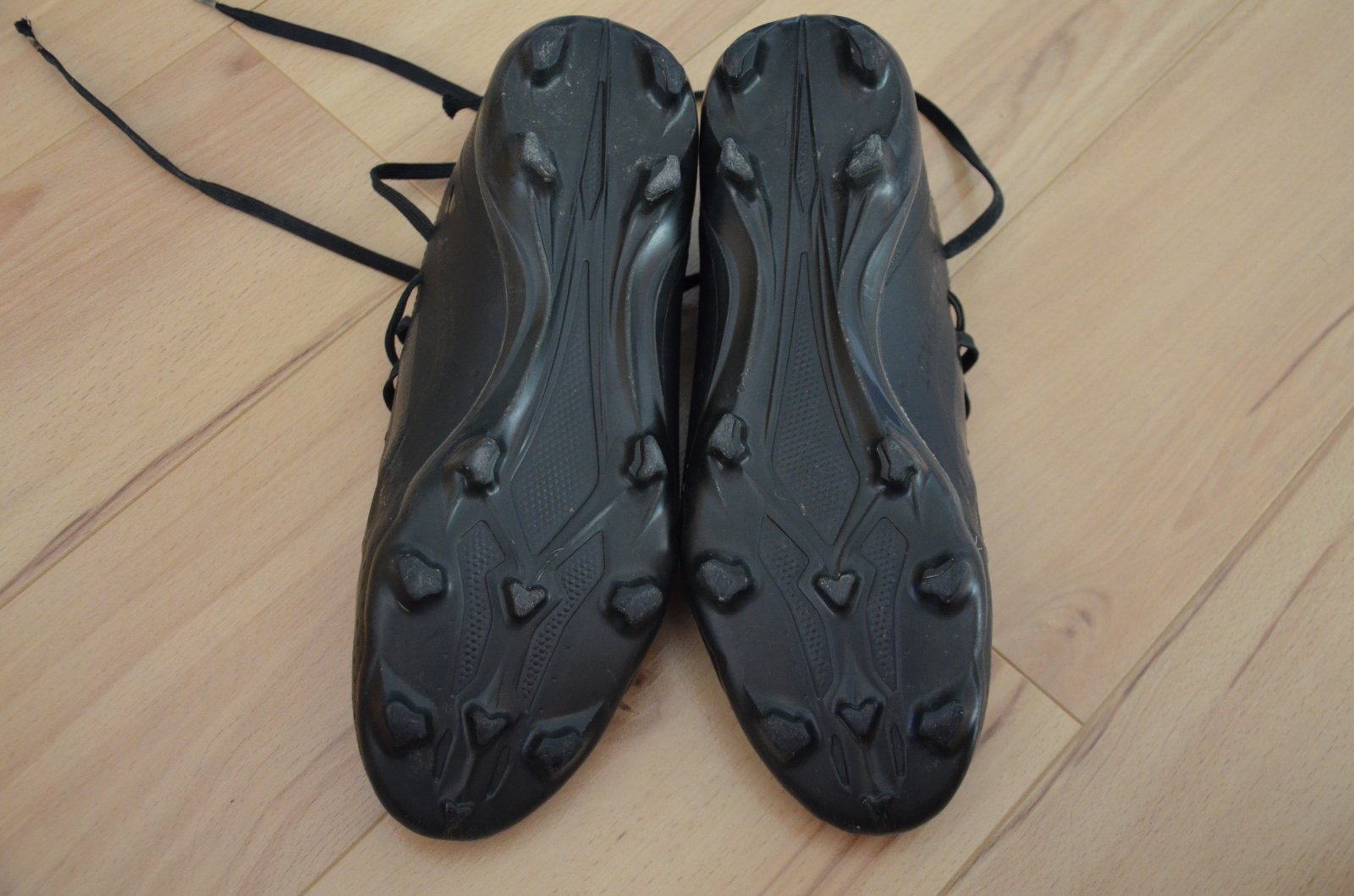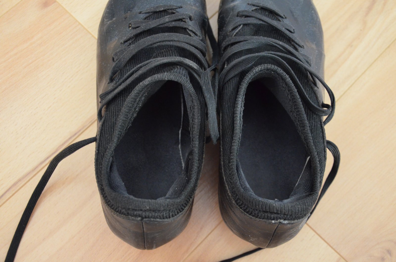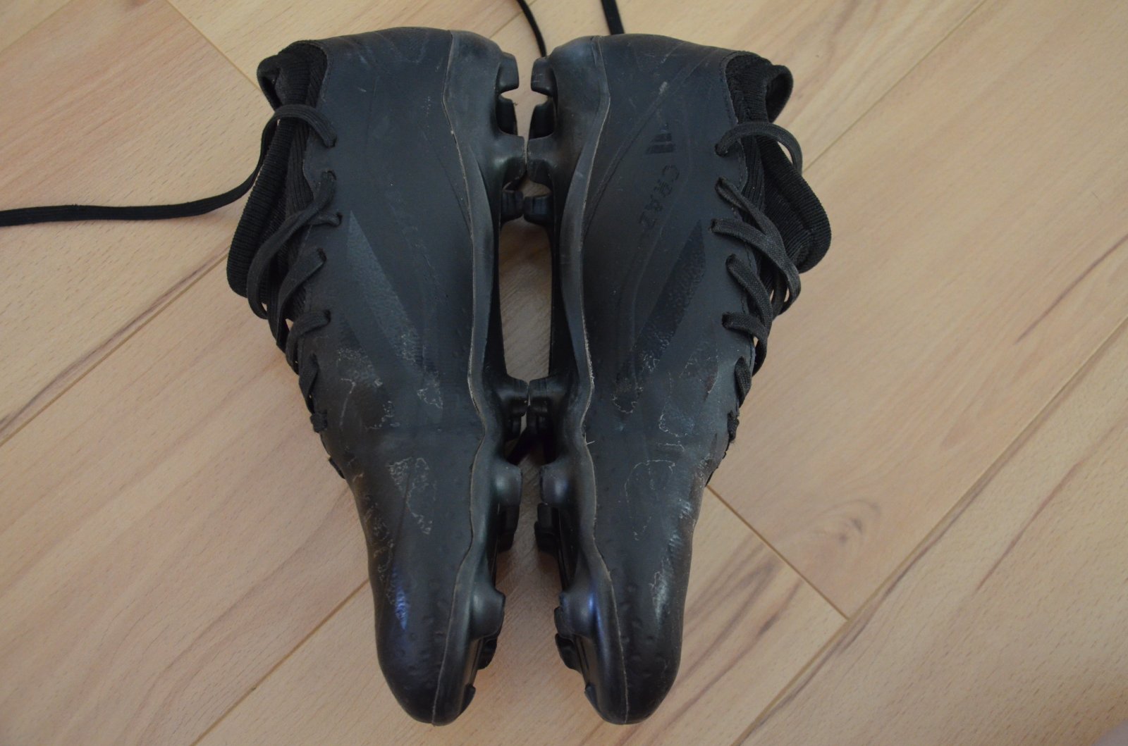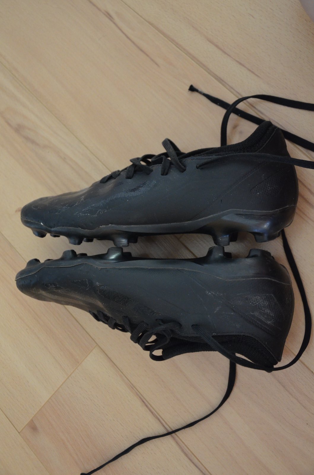 Intenzívne nosené kopačky, konce šnúrok zničené.