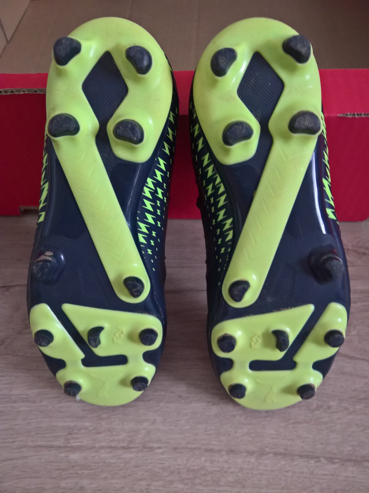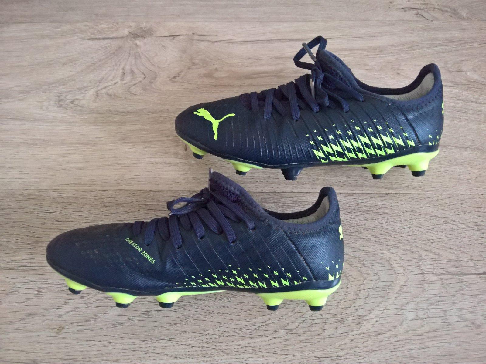 Kopačky puma v dobrom stave, na ľavej kopačke na vrchu je 2mm akoby rez, je to len na povrchovej koži, podtým je ešte ďalší materiál, ten je neporušený. Veľkosť je 34,5, stielku neviem zmerať, nedá sa vytiahnuť.